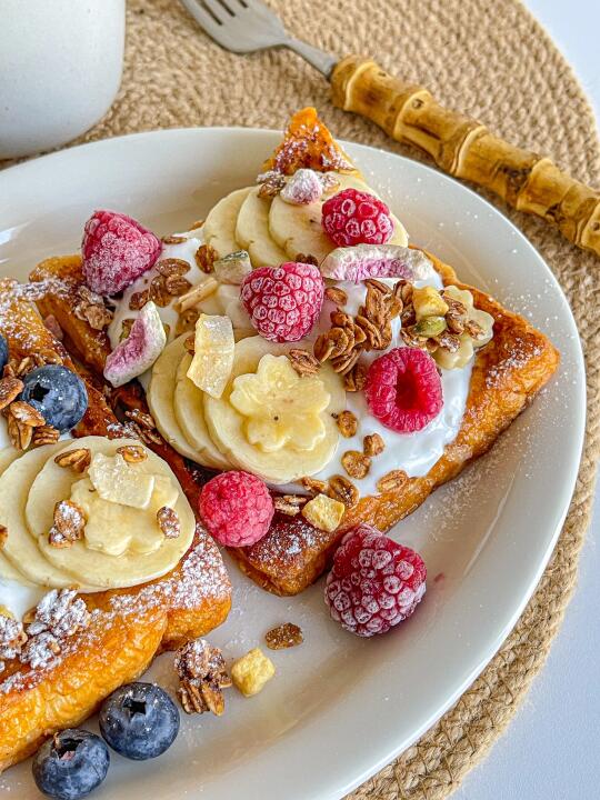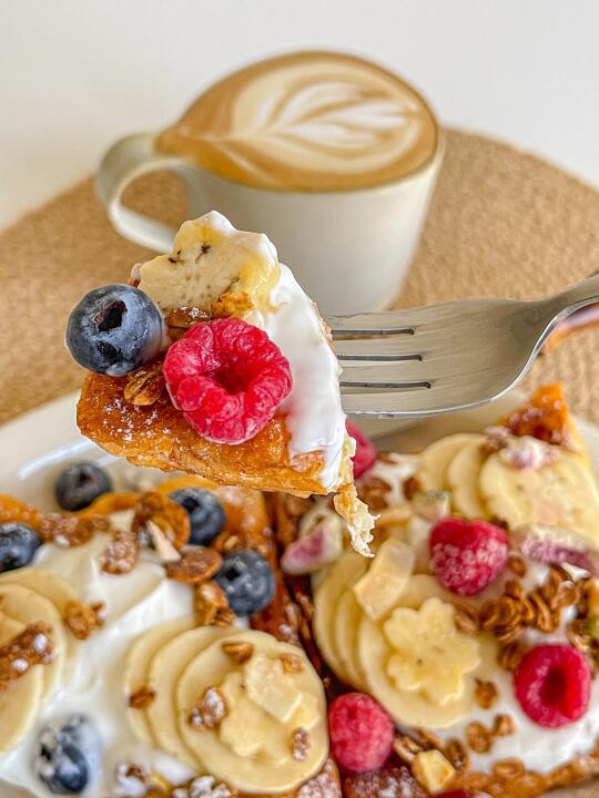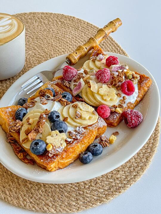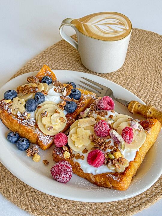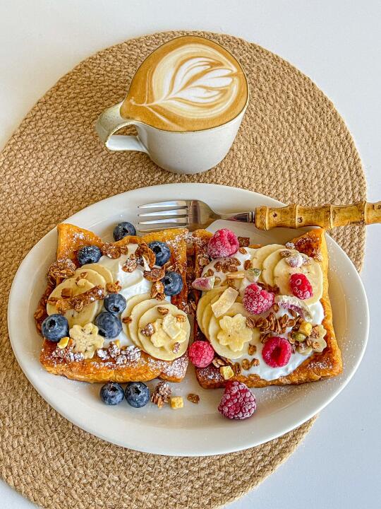 元气早餐🍌香蕉莓果法式吐司双拼🫐🍓热拿铁