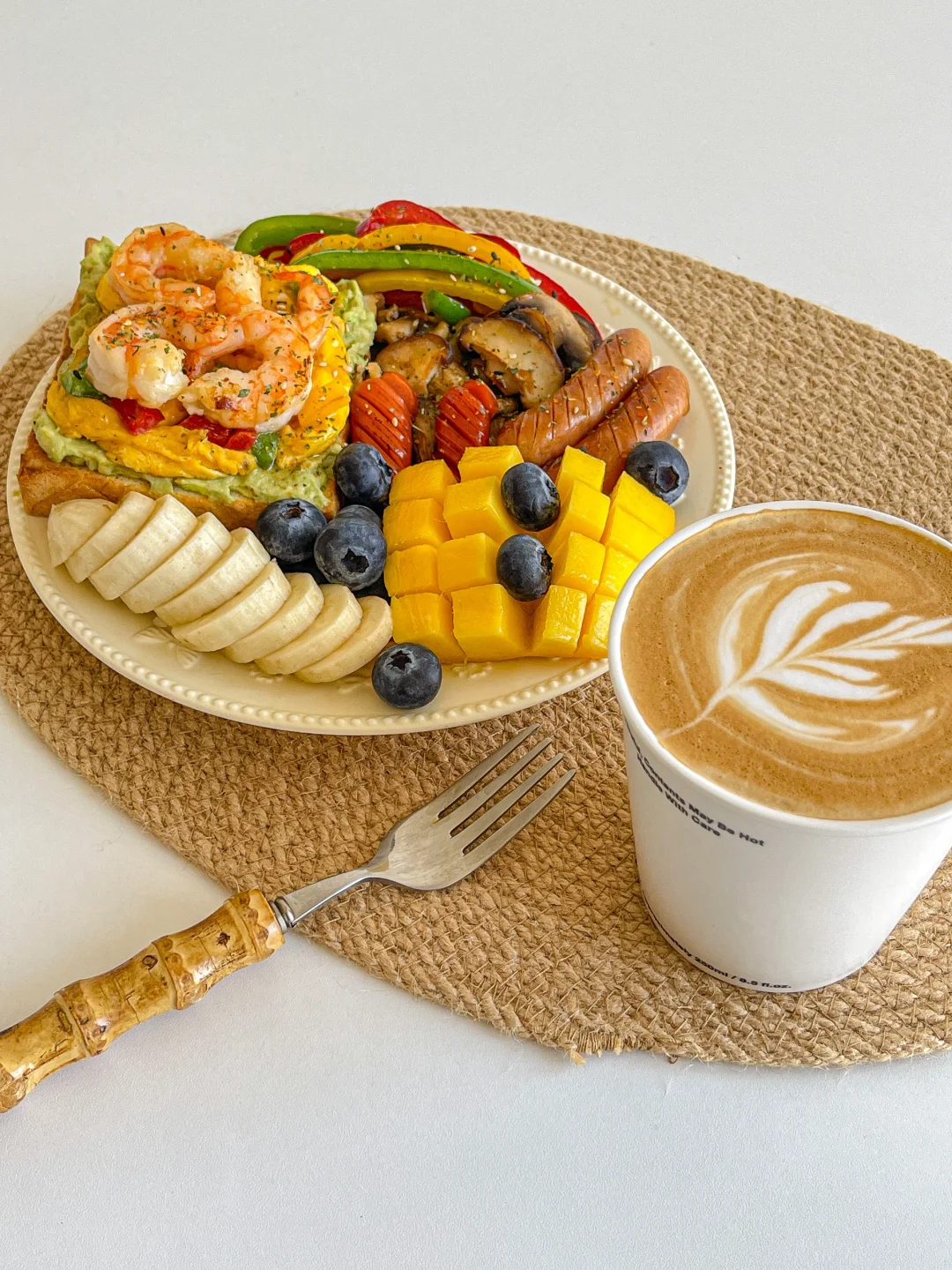 元气早午餐🍳吐司三明治彩椒烤肠拼盘🥪拿铁