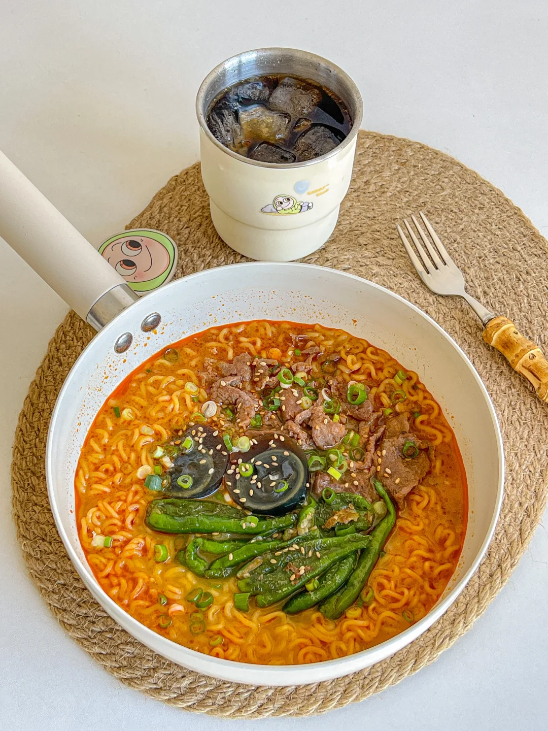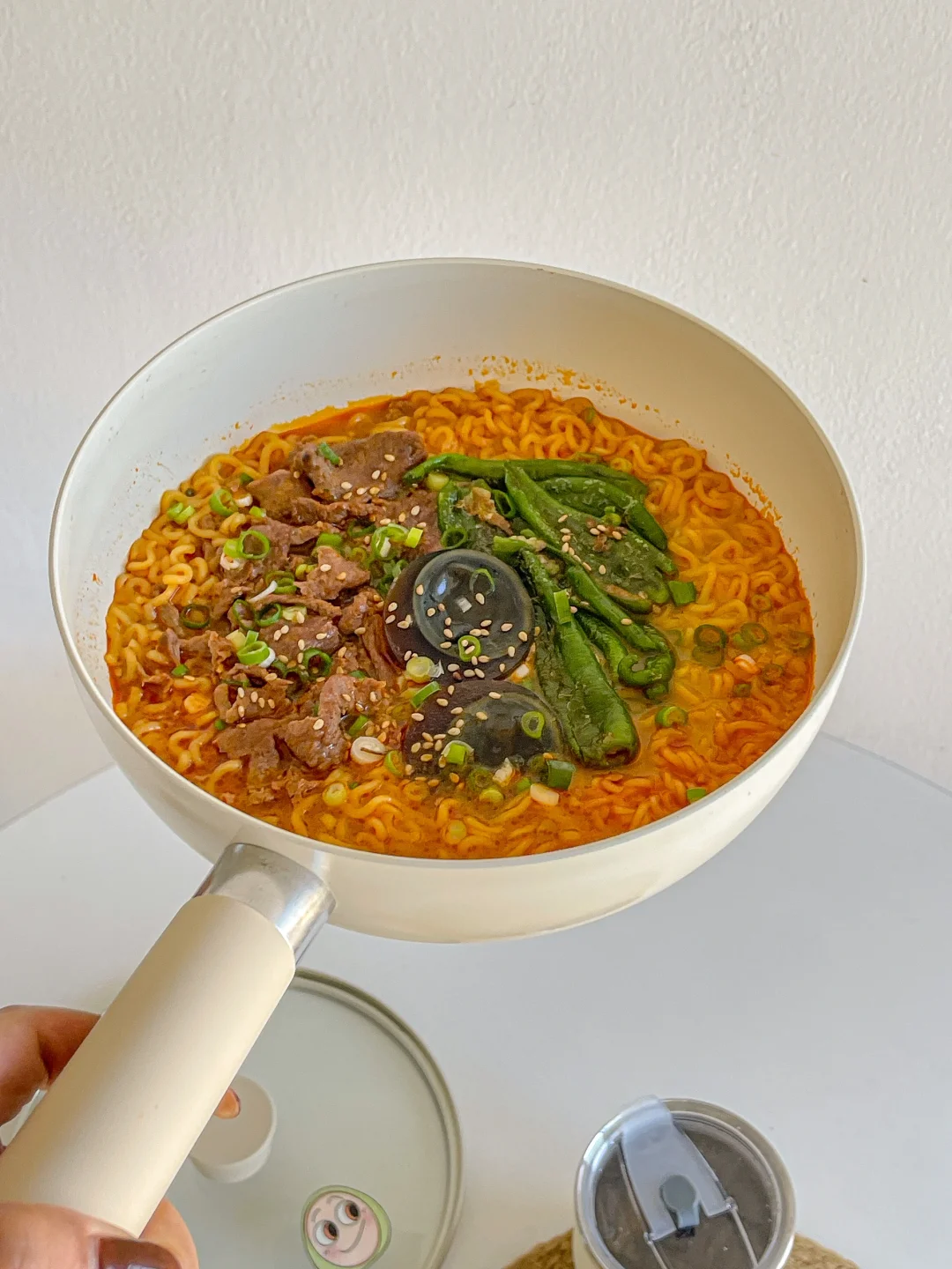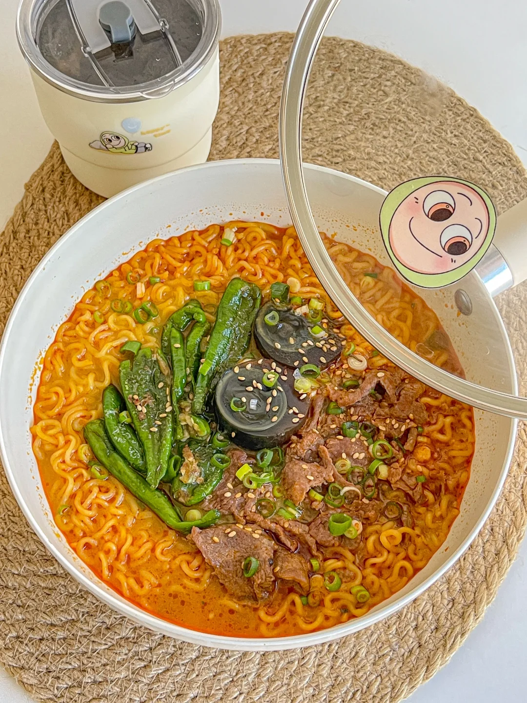 新买的泡面到了 昨晚忍住没有吃! 早午餐迫不及待煮了一包!巨满足! 食材:🍜 青辣椒➕牛肉➕皮蛋➕泡面 热气腾腾的泡面 嗦起来嘎嘎爽[偷笑R]每次用这个小锅煮泡面都觉得巨方便!一锅端煮完直接开动!不用洗碗的快乐!