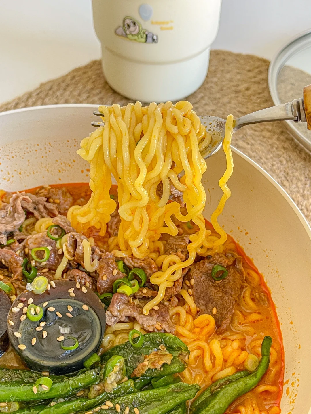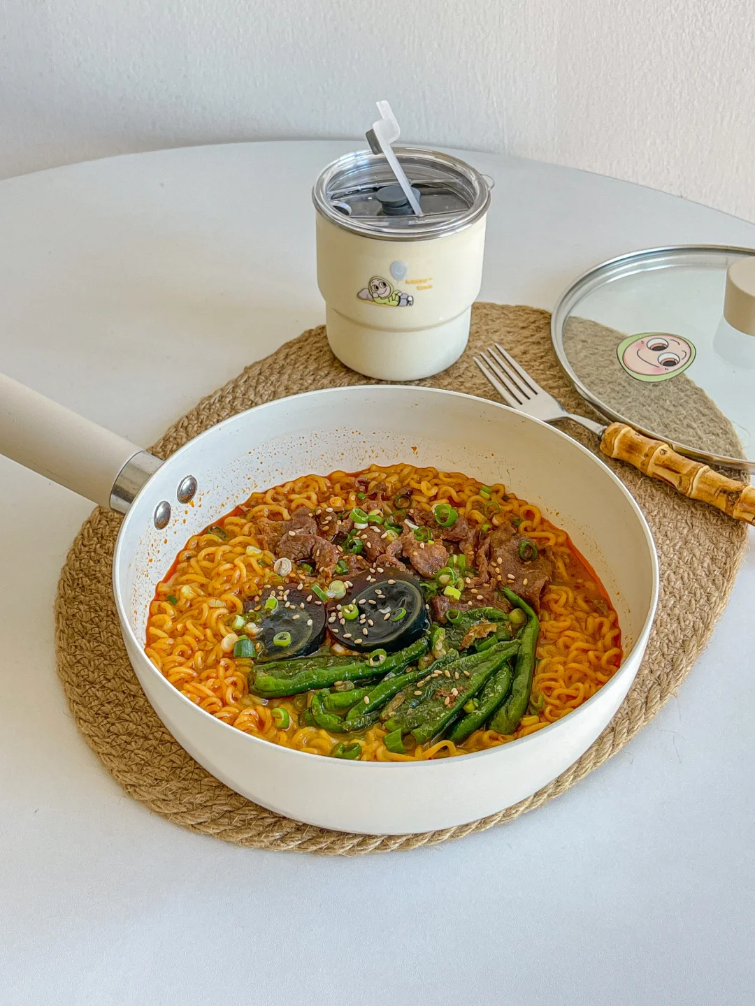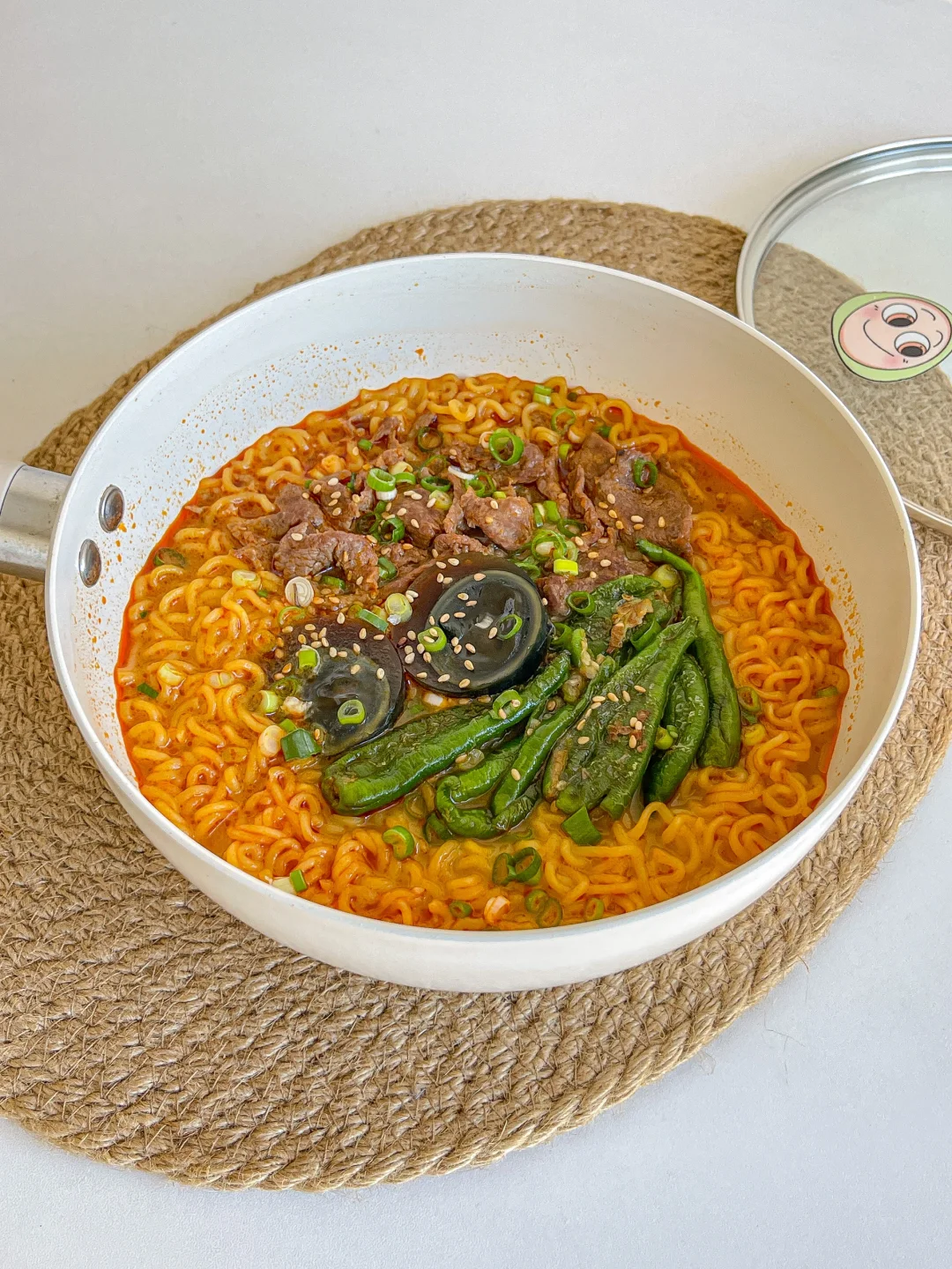 新买的泡面到了 昨晚忍住没有吃! 早午餐迫不及待煮了一包!巨满足! 食材:🍜 青辣椒➕牛肉➕皮蛋➕泡面 热气腾腾的泡面 嗦起来嘎嘎爽[偷笑R]每次用这个小锅煮泡面都觉得巨方便!一锅端煮完直接开动!不用洗碗的快乐!