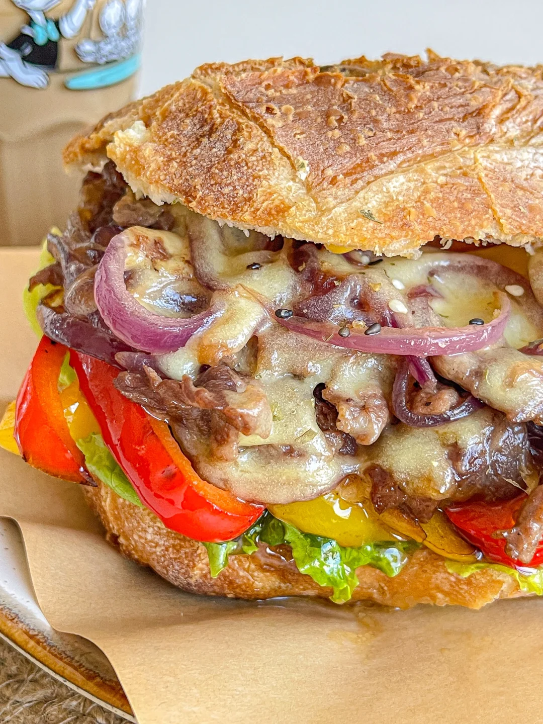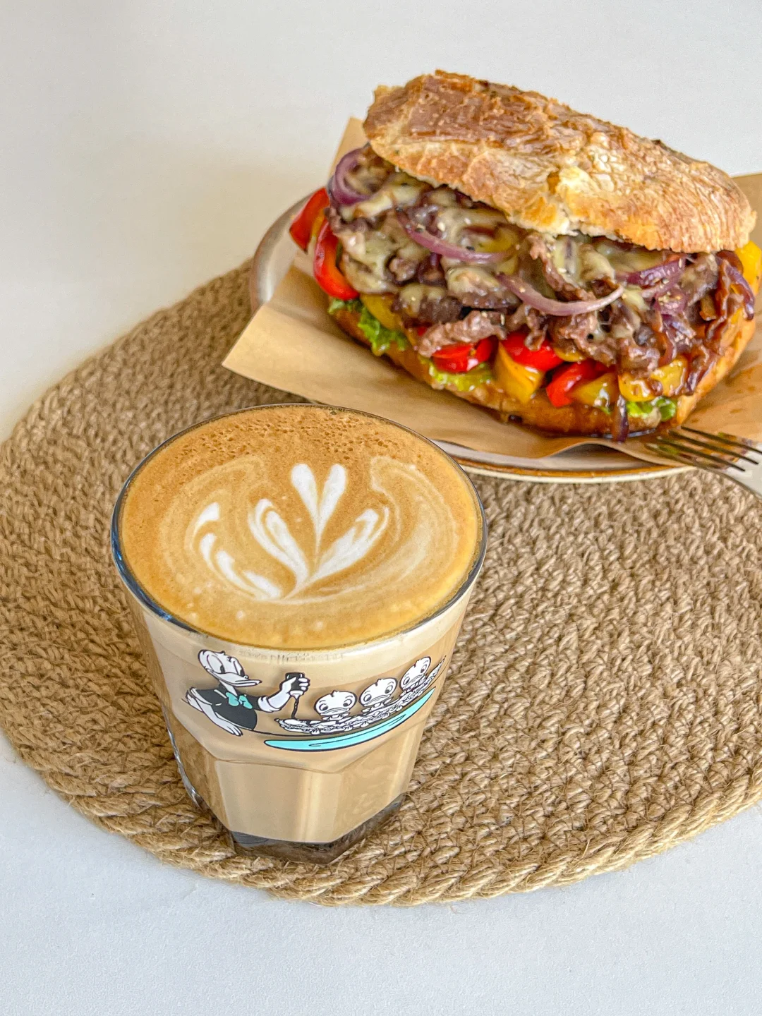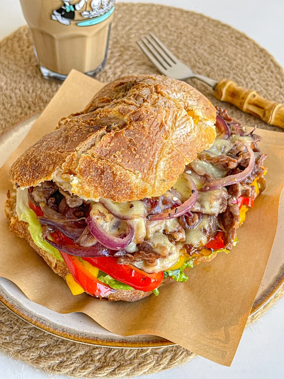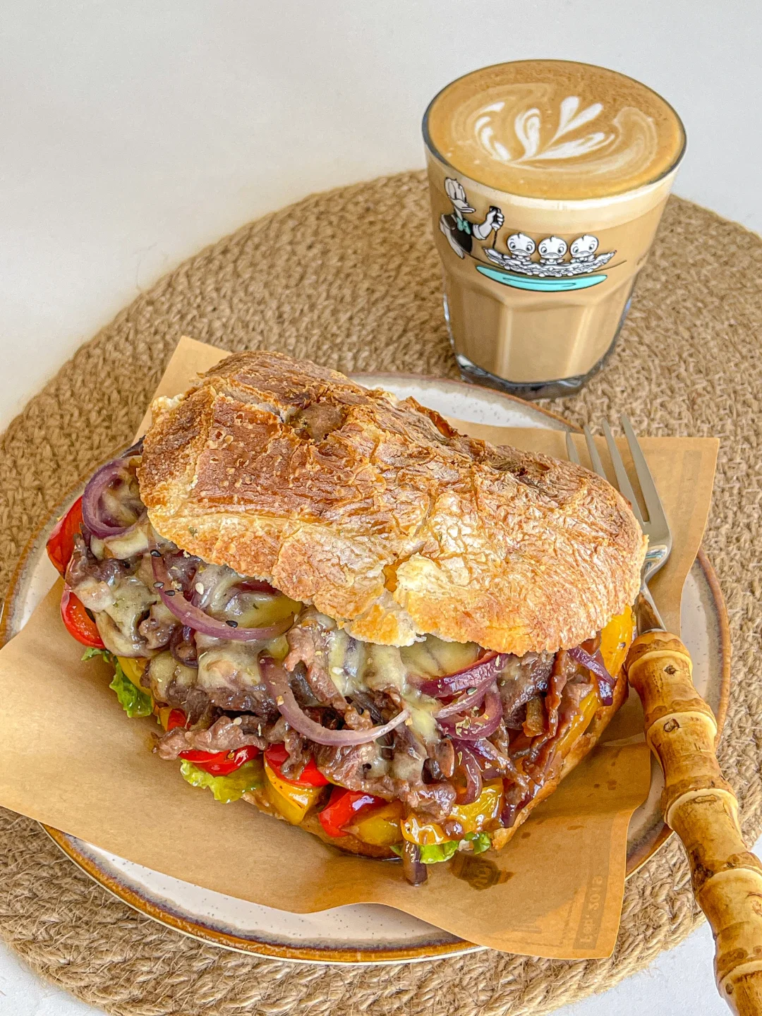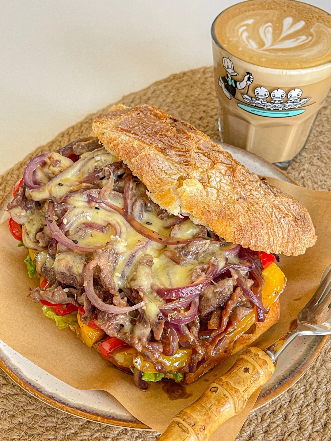 元气早餐🧅洋葱牛肉芝士恰巴塔三明治🥪拿铁