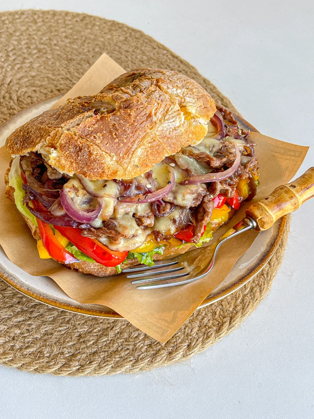 巨满足的恰巴塔三明治🥪 做法简单!口感丰富 能量满满~ 食材:🥖 恰巴塔➕生菜➕彩椒➕牛肉➕洋葱➕马苏里拉芝士 做法:🥪 1.牛肉用少量黑椒海盐 淀粉抓拌均匀 喷一层橄榄油锁住水份 腌制15分钟左右 炒至7分熟备用 2.彩椒切条 炒软放恰巴塔里面 洋葱炒软用少量黑椒海盐 生抽调味 3.再倒入牛肉 放一小块黄油增加风味 再来一层马苏里拉芝士 盖上锅盖等芝士融化 最近早餐老吃这款三明治 饱腹感强 一口咬下去口感丰富 牛肉嫩滑汁水多!还有会拉丝的芝士!有滋有味值得尝试一下[偷笑R]