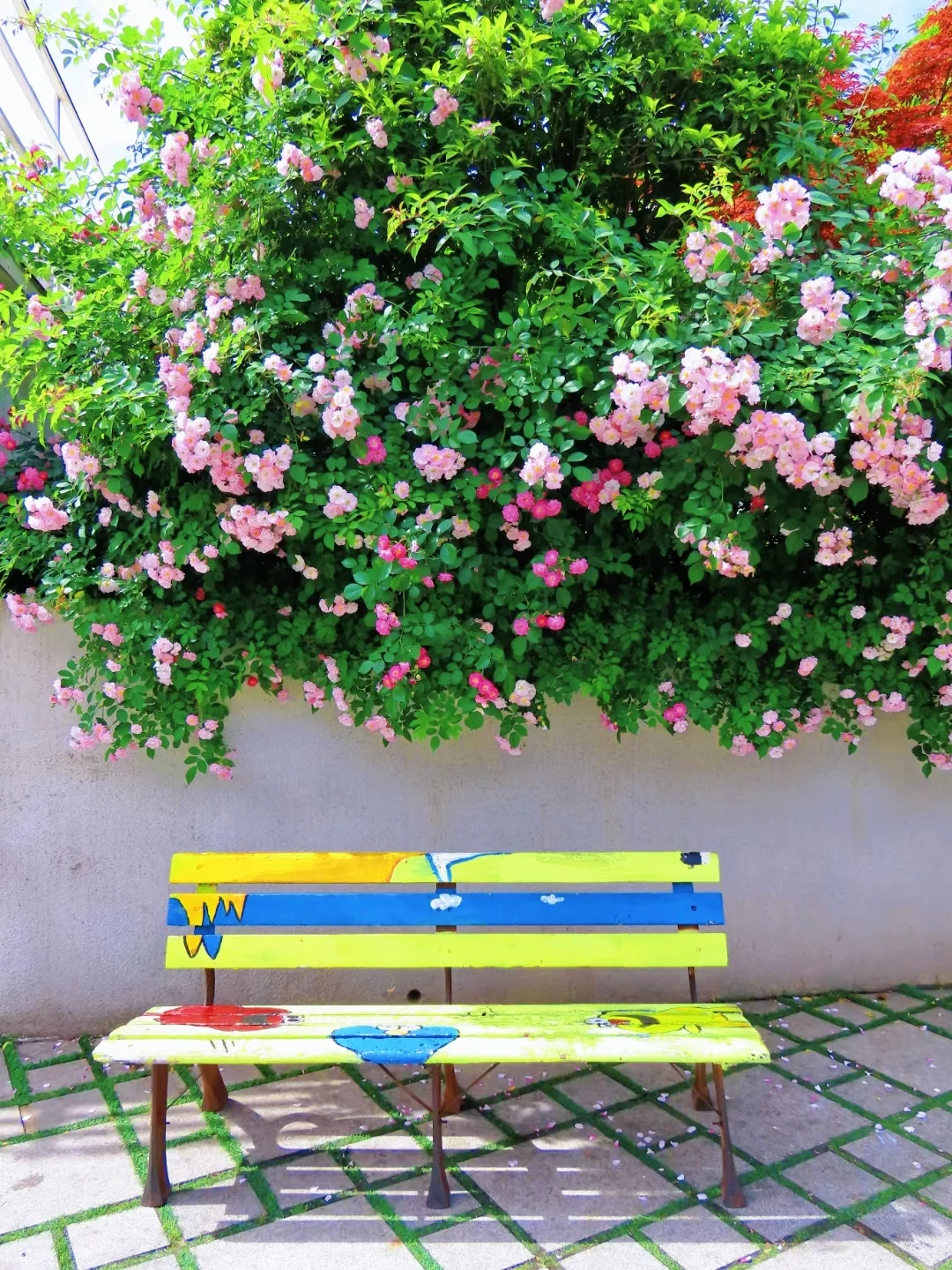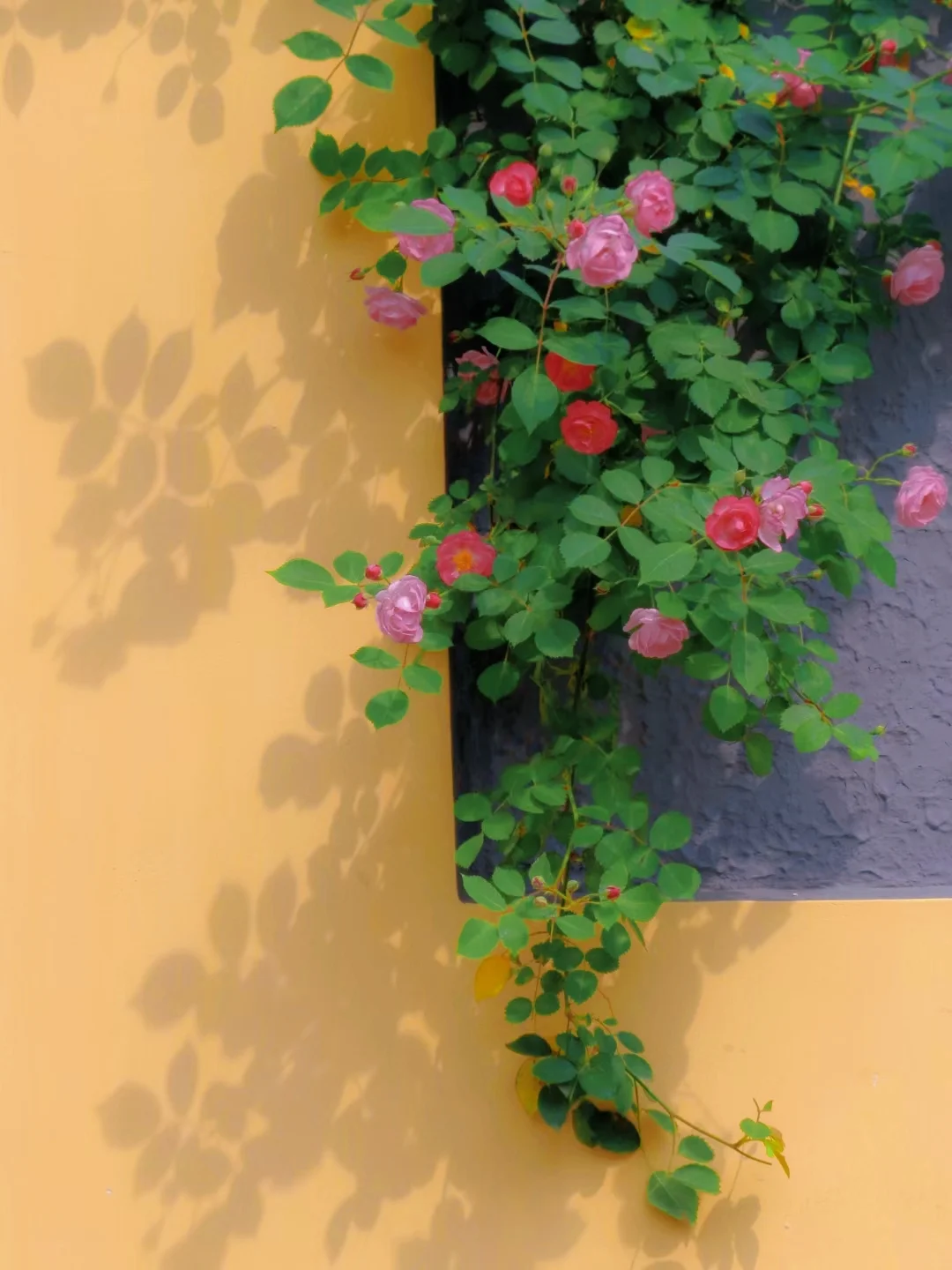 这里的蔷薇是色彩艳丽的安吉拉,花期比粉白色的蔷薇稍晚一些,前几年这里的安吉拉开疯了,花儿已经不是一朵一朵的开,而是一堆一堆的开,花量多到让人目瞪口呆!