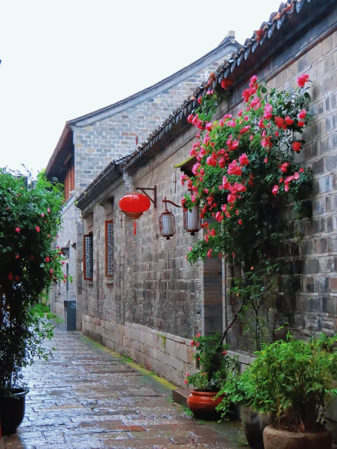 老门东的蔷薇花品种比较多,分布在街区的各个角落,每个品种的花期有先后,粉嫩的蔷薇和古建民居适配度满分