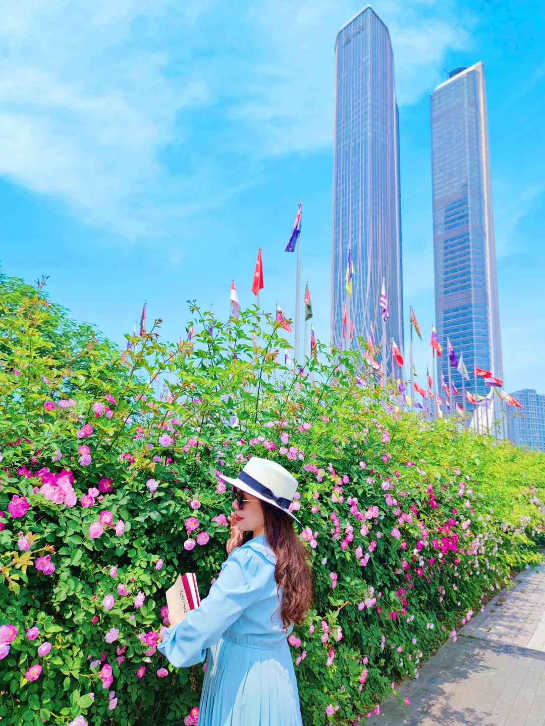 这里有很长的蔷薇花墙,花枝都比较低,花多人少,很适合拍人像