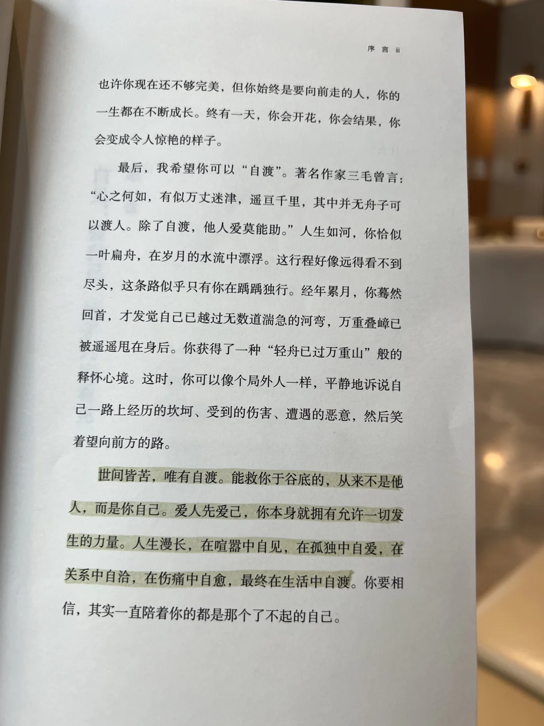 🔺在书店随手翻开墨多先生的《自渡》,第一段话就击中了我:"真正能治愈你的,从来不是时间和某个人,而是你的格局和释怀。”那一刻,我突然明白为什么有些伤痛即使被千万人安慰,依然无法愈合,因为我们始终在等待他人的救赎,却忘记了自救的力量