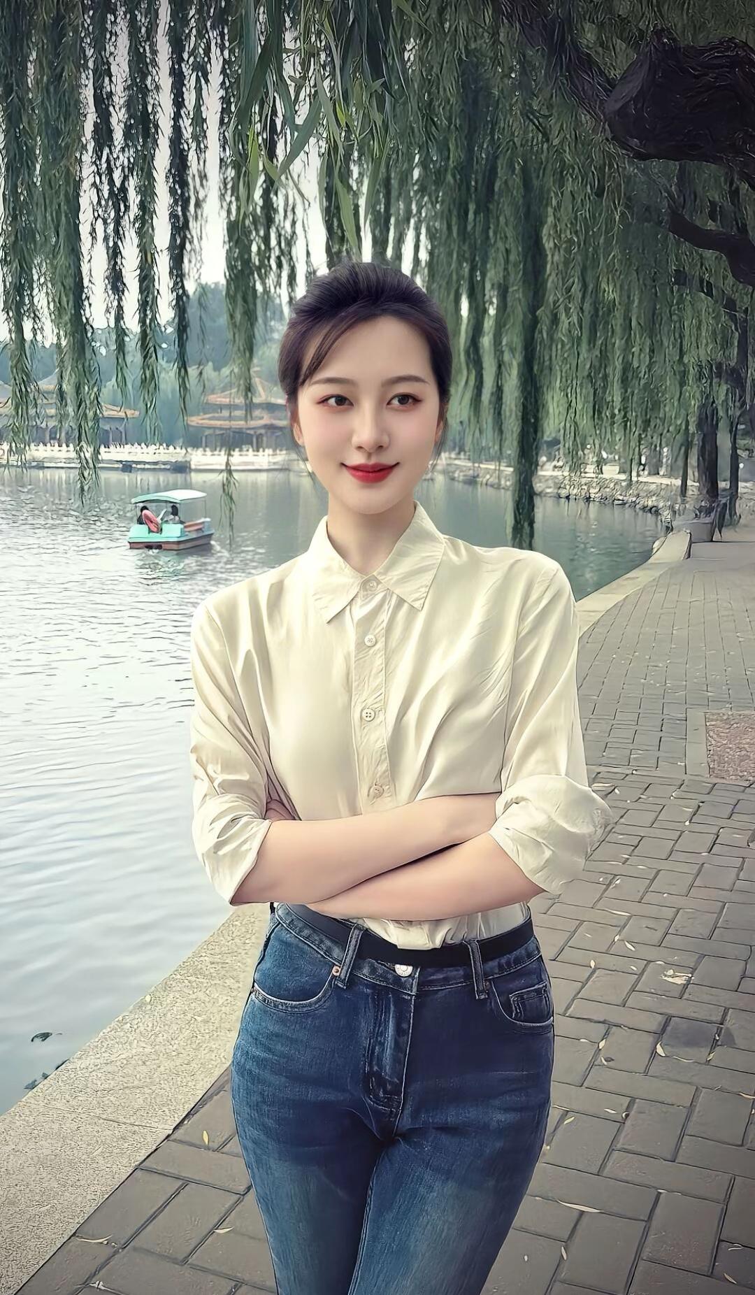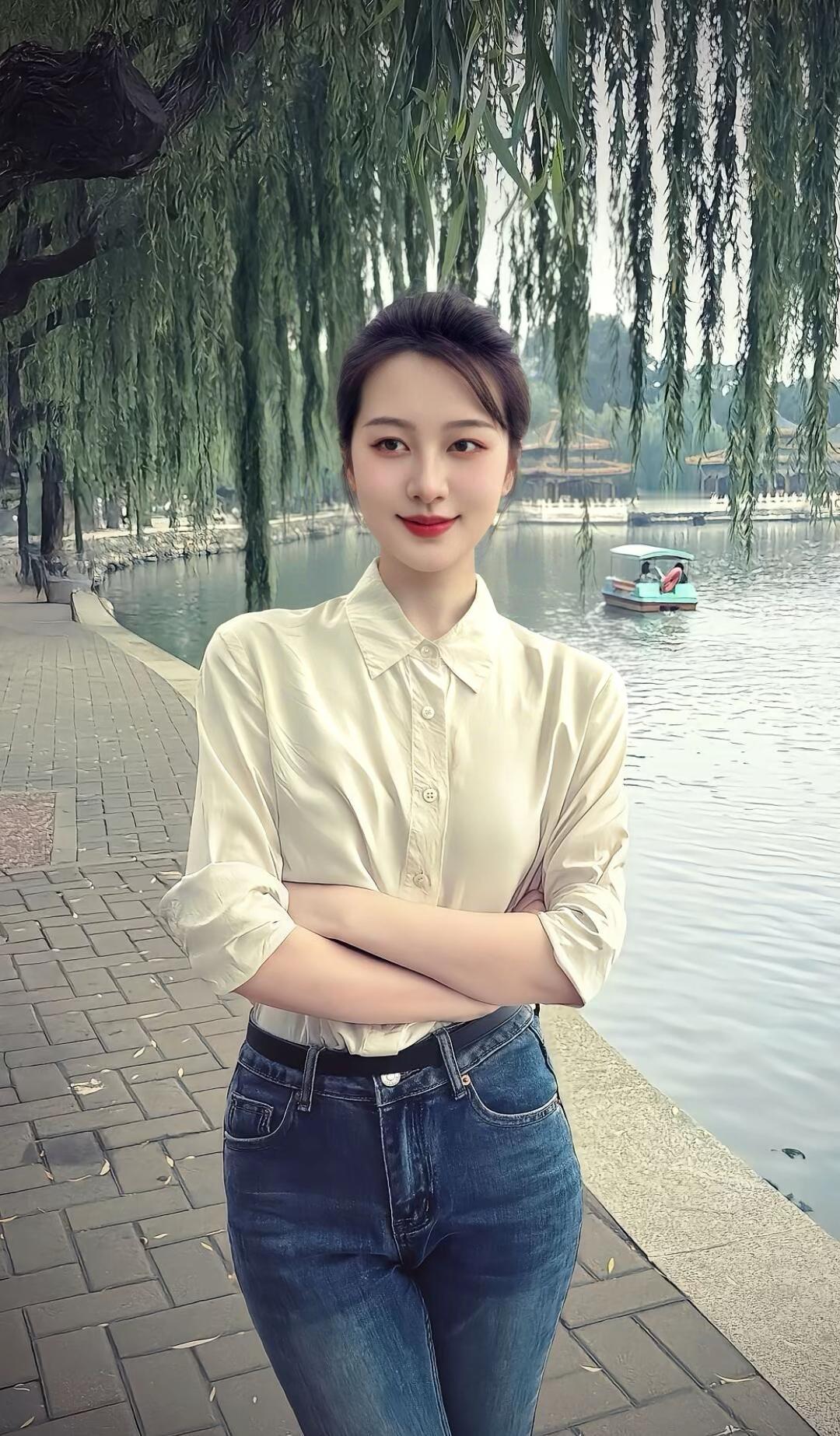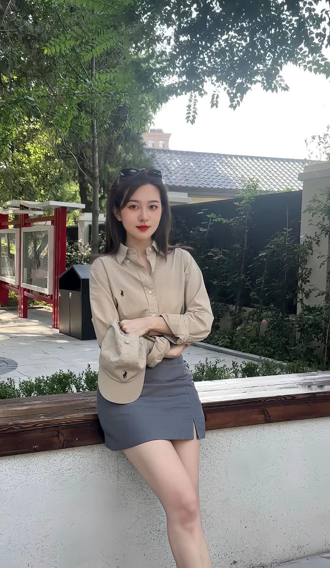 夏日清新穿搭,公园长椅上的优雅时光🌿👗💄
