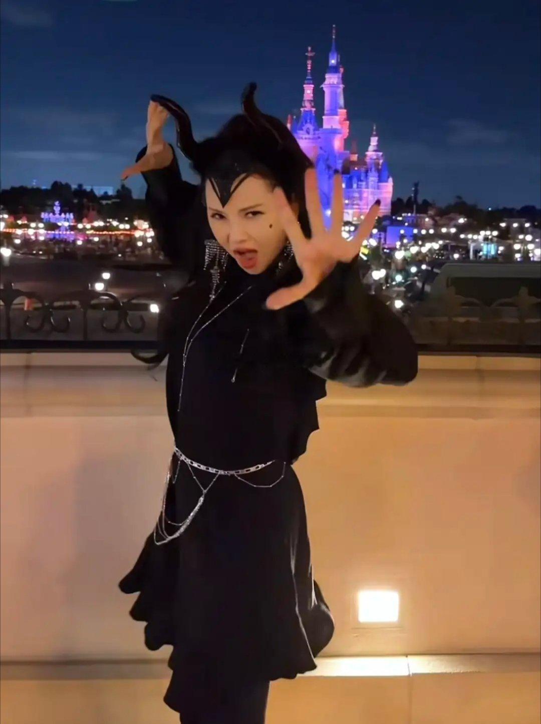 伊能静在迪士尼“过洋节”,57岁还扮可爱,9岁米粒挡脸更像秦昊
