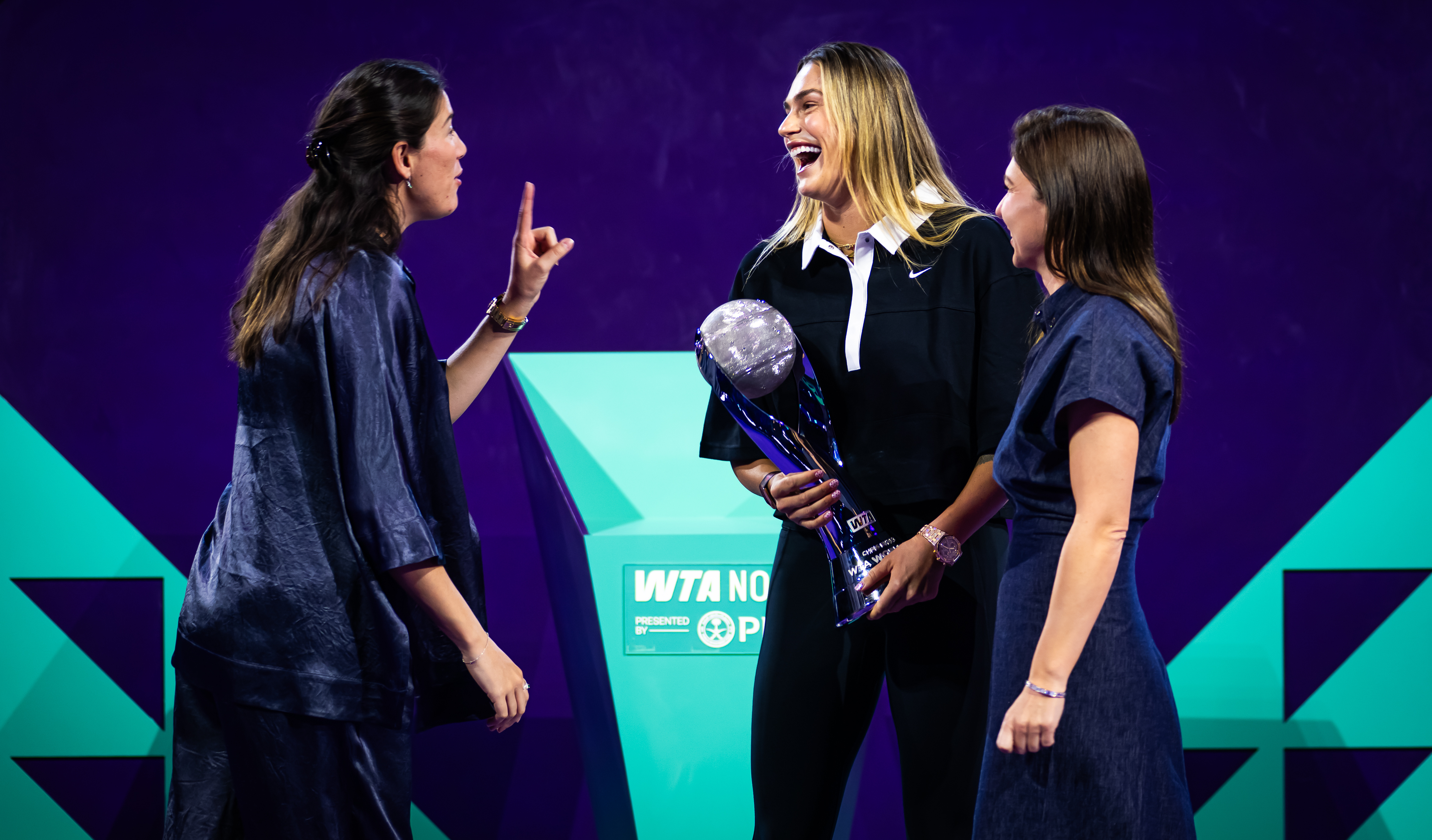 穆古鲁扎和哈勒普作为嘉宾出席萨巴伦卡的年终第一奖杯授予仪式,猜猜三位都交流了些什么?[酷]