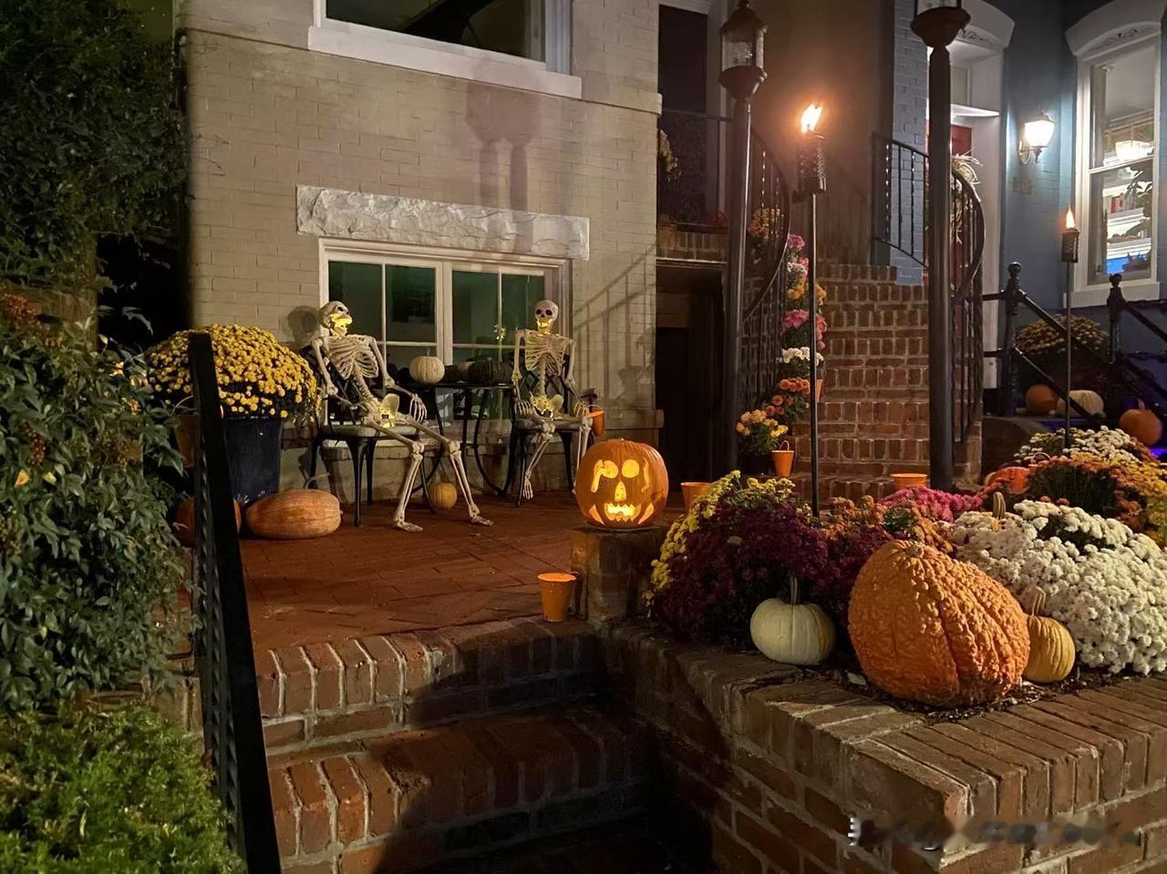 11月1日是外国人的“万圣节” 和儿子打电话聊天,他告诉我,节日那天的凌晨,他们学校同学约好了,一起跑到小山坡上学狼叫,此起彼伏的“嗷嗷”声,他感觉自己又回到小时候了,快乐又刺激。他还像小孩那样去拿给孩子们准备的糖果。 学校里,宿舍门口都装饰得怪吓人的。