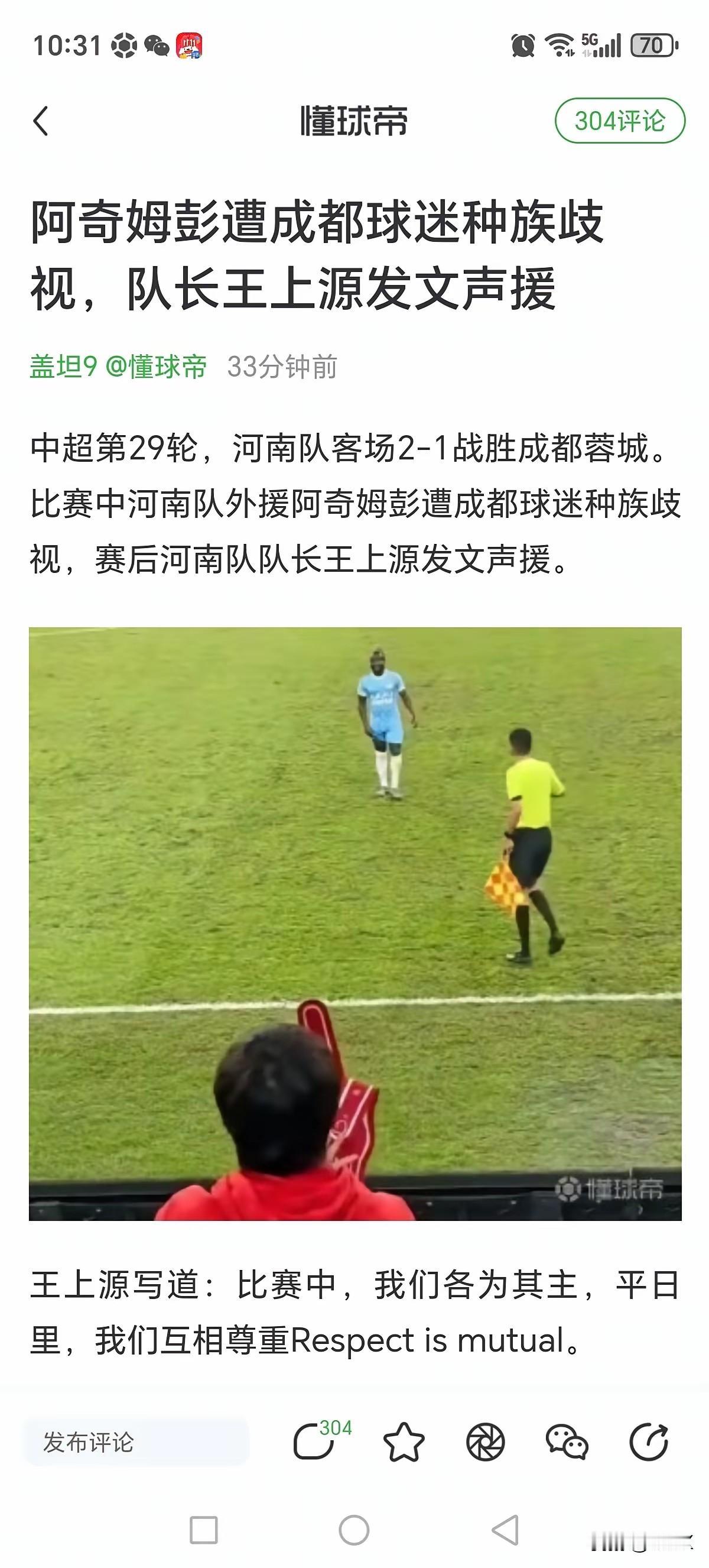 正义快速到来,给成都警方点赞! 中超29轮成都蓉城主场对阵河南队的比赛中,申某黄某二人用语言,动作和物品对河南球员阿奇姆彭进行侮辱挑衅。事后成都警方迅速行动,对扰乱公共秩序和挑战法律底线的行为零容忍,依法对二人做出行政拘留的处罚,并禁止入场观赛一年。 赛后还有球迷对自家球队训话,说我们跟谁有仇你们就输谁。这不是球迷和球队的应有关系,是把球队进行绑架,成为发泄私愤,为极端行为买单的工具。这所谓的"仇"完全是某些人为博眼球挣流量故意制造的,这些人应该被清除出球迷队伍,其行为表面是对球队的爱,实则是对球队的害!