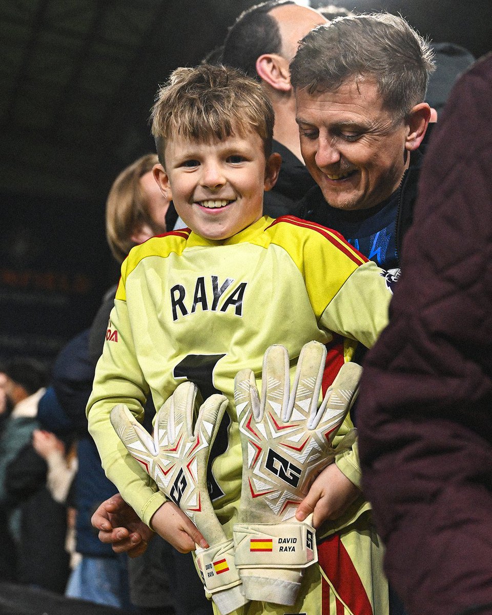 大卫·拉亚在战胜伯恩利后将球衣和手套送给了一位球迷🧤