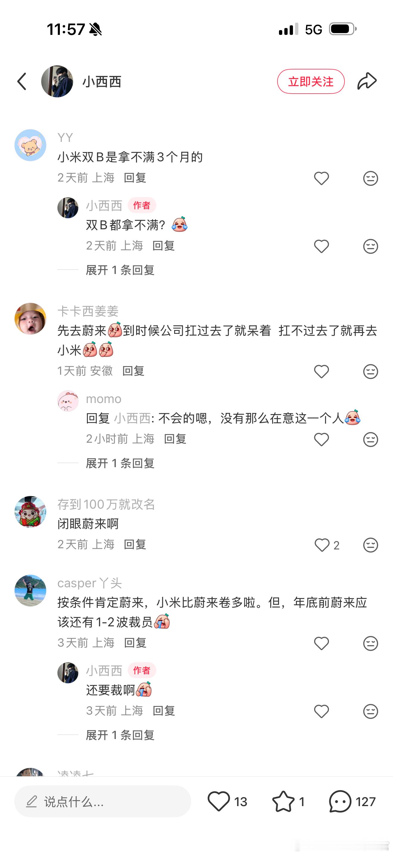 网友在小米和蔚来之间犹豫[思考]哪边强度更高呢?