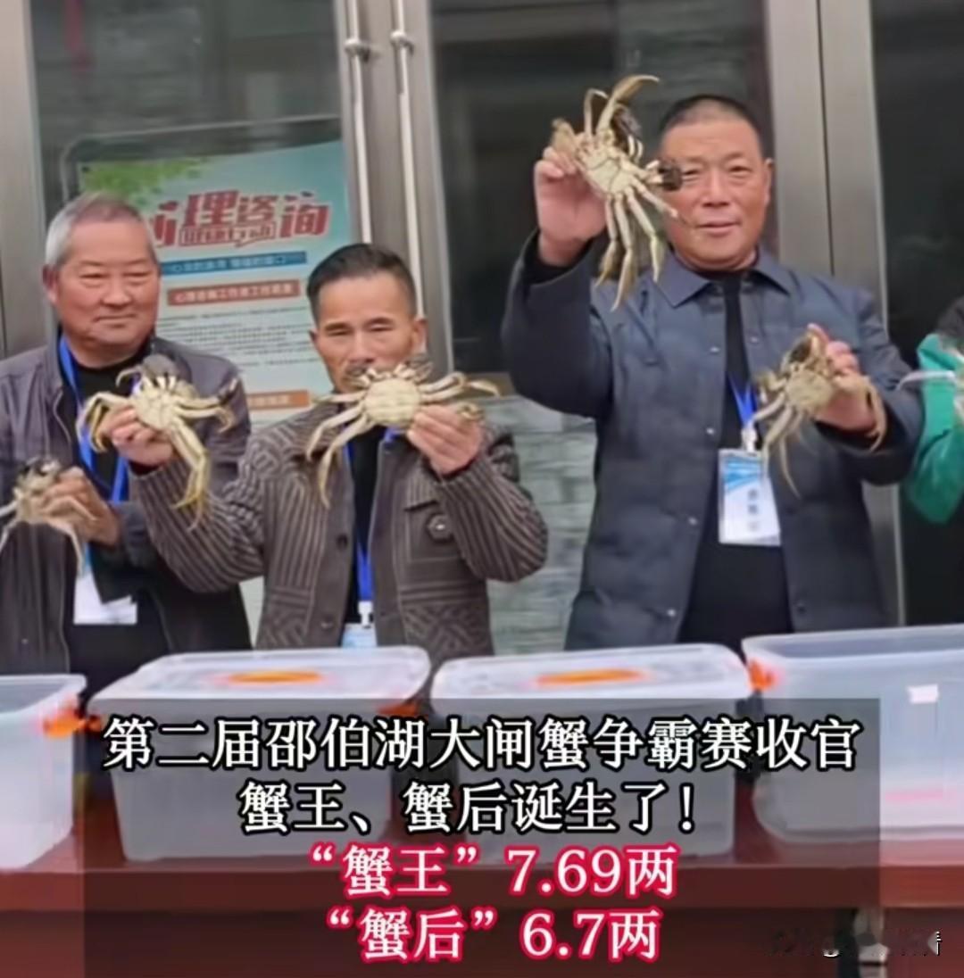 江都年度蟹王蟹后出炉!这size绝了🦀️ 江都吃货速集合!第二届邵伯湖大闸蟹争霸赛落下帷幕,“重量级”王者终于现身啦! 这次评选超严苛!主评委薛庆昌主任透露,得从重量、外观、活力、口感四大维度打分,外观还得是“青背白肚、金爪黄毛”才算达标,毕竟背壳发青才说明蟹膏够饱满。 最终小纪镇的养蟹高手拿下双冠!迎新村王小喜选送的7.69两公蟹封王,高徐村刘文太的6.7两母蟹封后,这体量看着就流口水,邵伯湖的蟹也太顶了吧!
