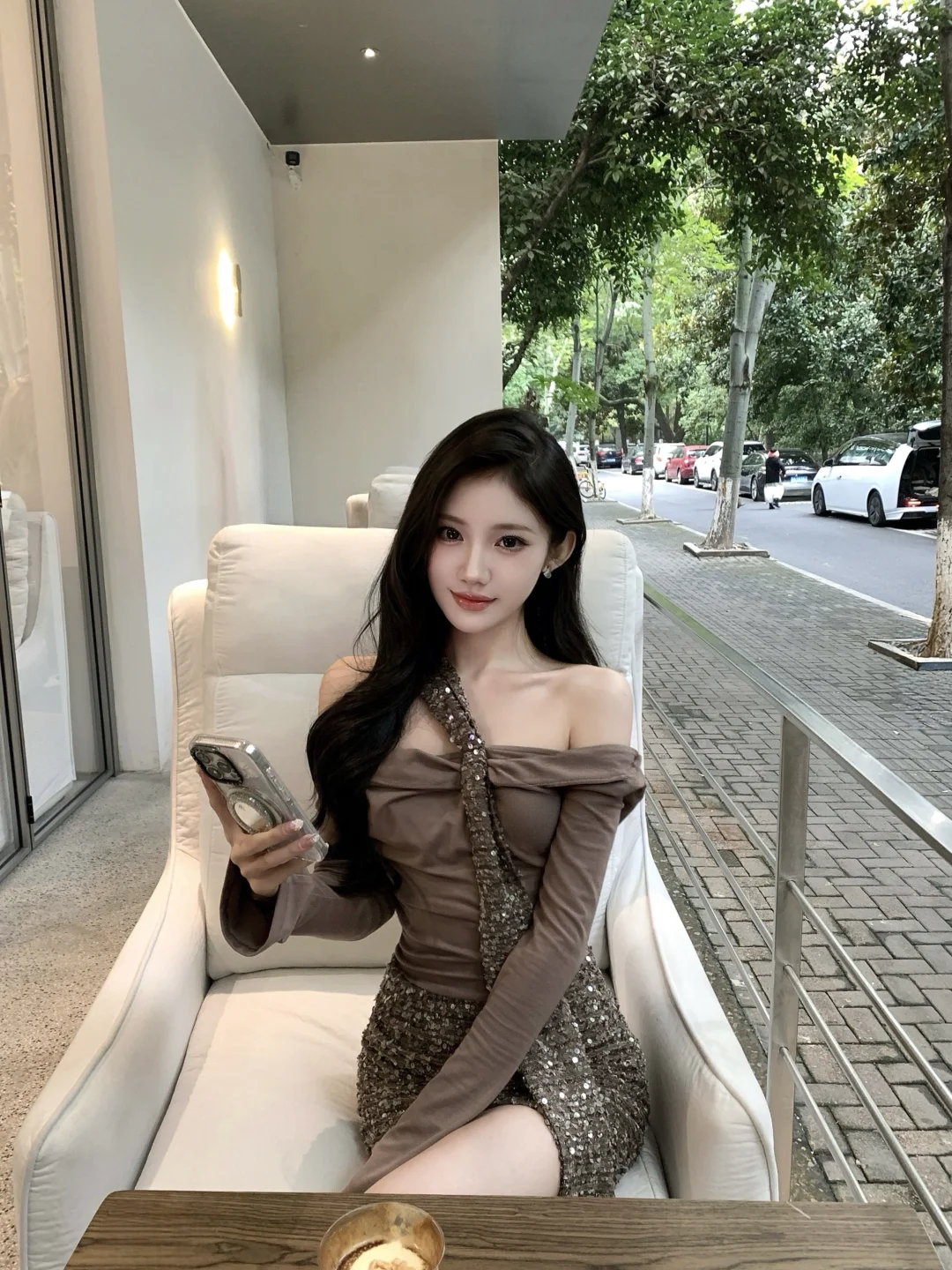 晚上走在街上,看见个少女,长得那叫一个好看。她脸上化着精致的淡妆,眼睛亮晶晶的。