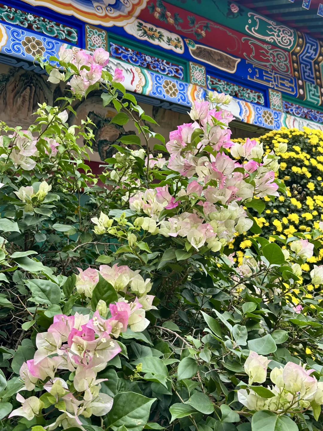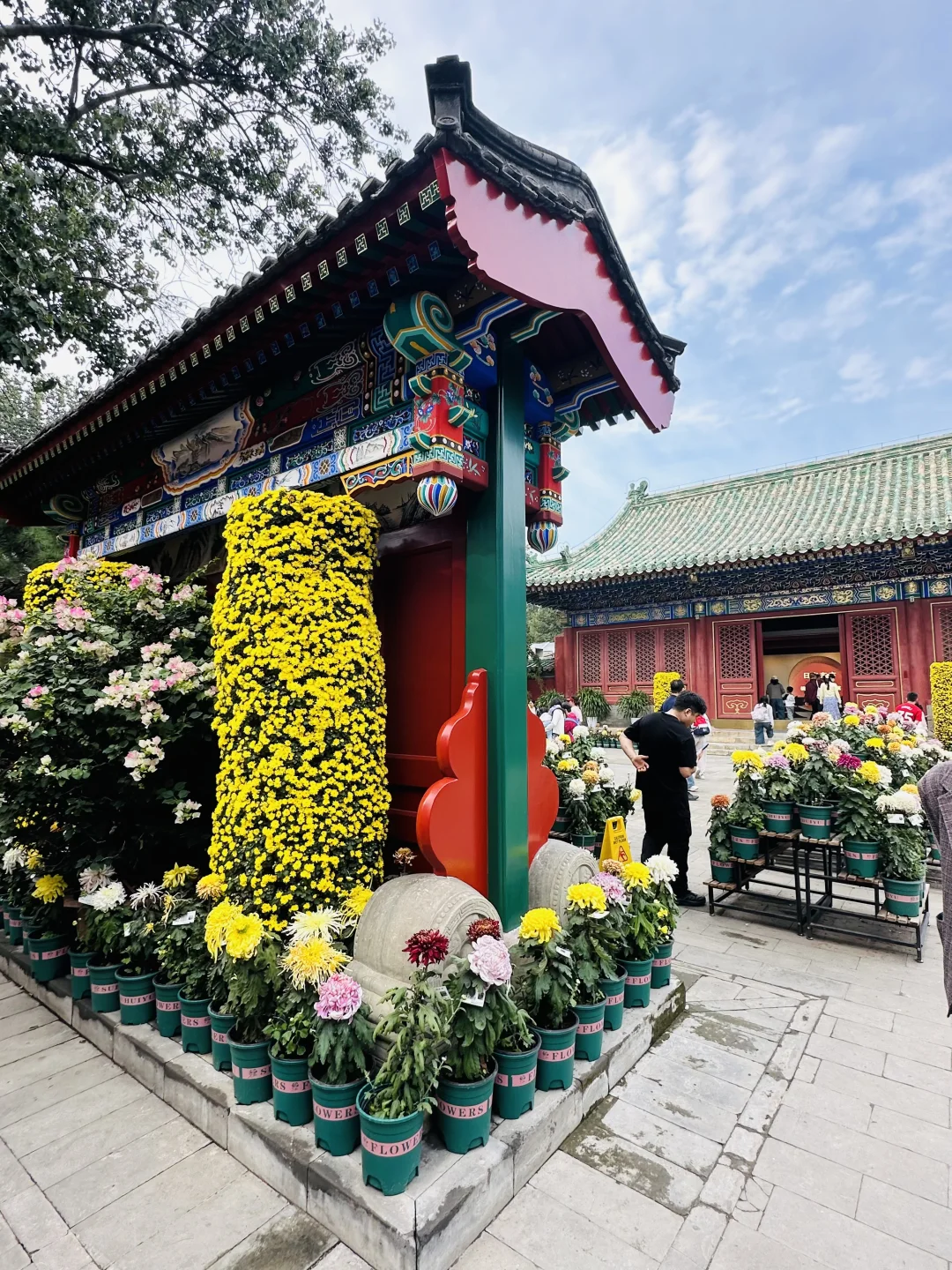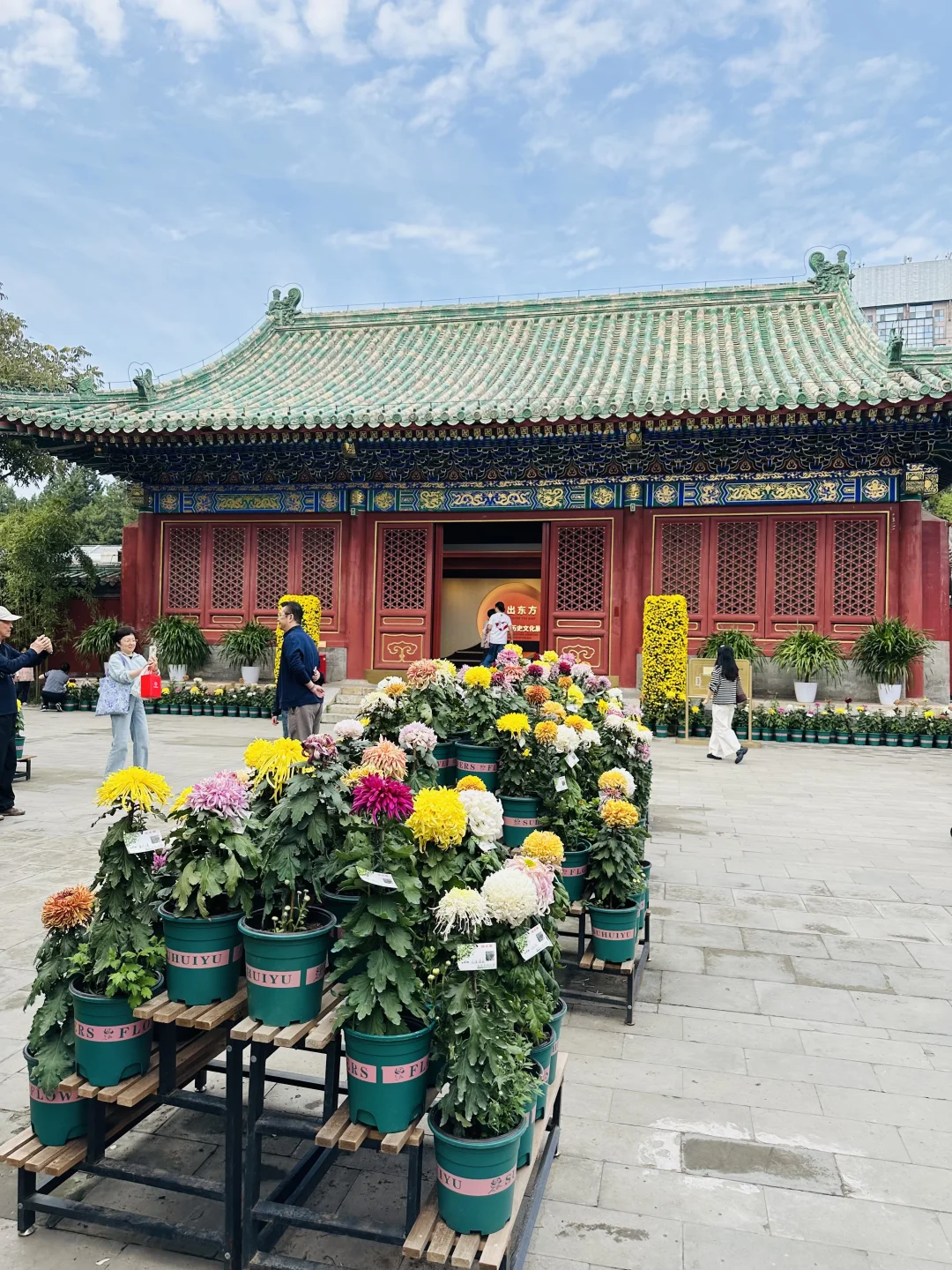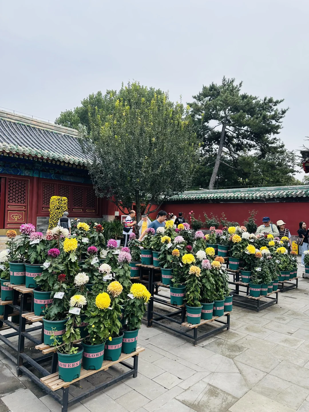 ◦ 古建筑前的菊花展区,拍全景很有氛围感