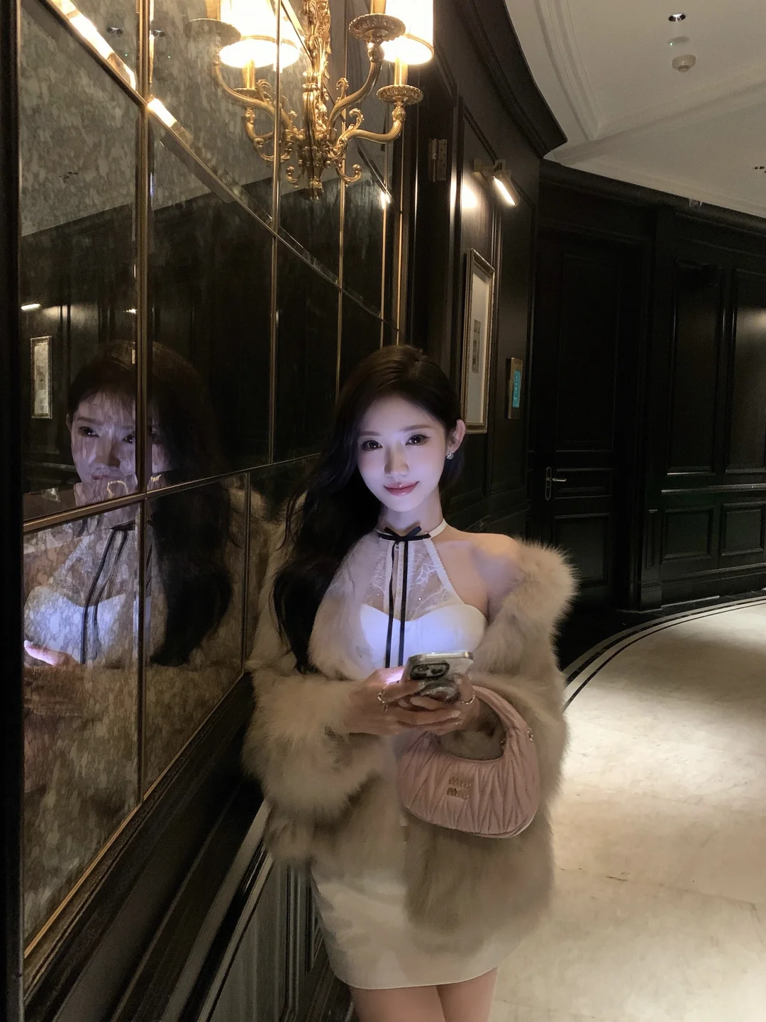 晚上走在街上,看见个少女,长得那叫一个好看。她脸上化着精致的淡妆,眼睛亮晶晶的。