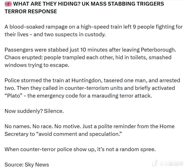 没有公布姓名,没有种族信息,没有作案动机。内政大臣只是礼貌地提醒大家“避免评论和猜测”。