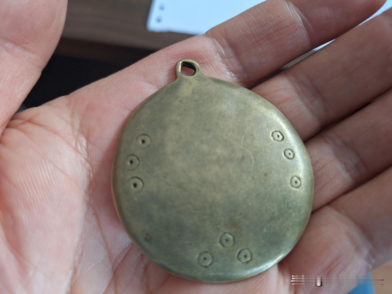 来来来,看看我收藏的文玩。 九宫八卦牌是藏传佛教与苯教共用的宗教器物,又称“文殊九宫八卦牌”或“噶孜幻化宝镜”,属密宗七宝之一。其形制多为圆形,也有少量方形,主体由四层纹饰构成:中央为九宫格藏文数字(第一宫白色坎卦、第二宫黑色坤卦、第三宫绿色震卦、第四宫碧色巽卦、第五宫黄色太极点、第六宫白色干卦、第七宫赤色兑卦、第八宫白色艮卦、第九宫红色离卦),向外依次为汉地八卦符号、十二生肖莲瓣及佛教护经神兽“支巴扎”,象征时空方位与风水地理。 相传九宫八卦牌是莲花生大师取文殊九宫八卦图核心铸造,苯教则追溯至其创教祖师敦巴辛饶讲授的外明学体系。 背面的小圆点叫“咒点”,一个咒点相当于一百万次的诵经加持。