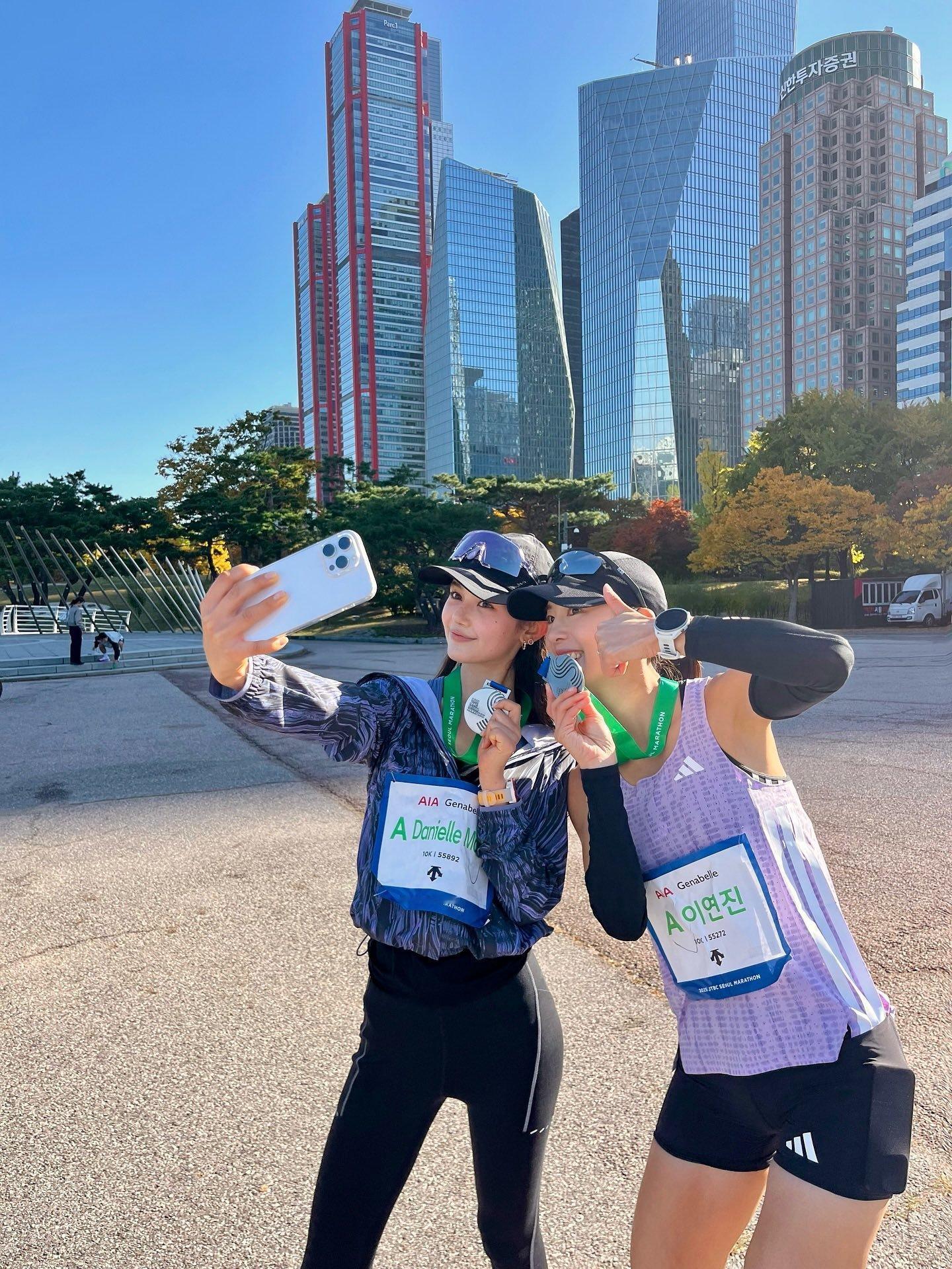 今天参加JTBC首尔马拉松10公里比赛的Danielle,宝宝还以46分钟刷新了10公里个人最快纪录[打call]