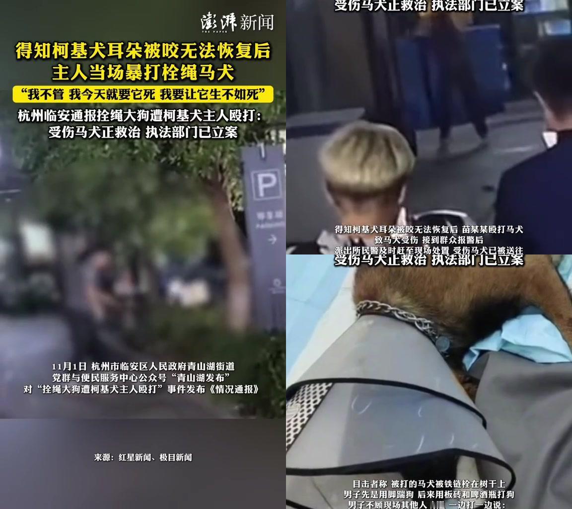 拴在树上的狗也能挨揍?这事儿看完我替狗委屈死! 10月29号傍晚,杭州青山湖,柯基没拴绳凑上去咬拴在树上的马犬。 结果柯基耳朵伤了没法恢复,主人直接把马犬拽到宠物医院门口暴打,边打边喊“我要让它生不如死”。 有人说,柯基受伤主人急,可以理解; 也有人说,自己没拴绳让狗闯祸,凭啥冲守规矩的狗撒气; 还有人说,这马犬平时超温顺,主人养了好几年,压根不凶。 但我想说,最寒心的就是守规矩的反而受欺负! 马犬没动,是柯基自己凑上去的;马犬拴着,是柯基没拴, 凭啥要老实狗替不老实的人买单? 你们遇到过不拴绳的小狗挑衅吗?这种理亏还撒气的事儿,你咋看?