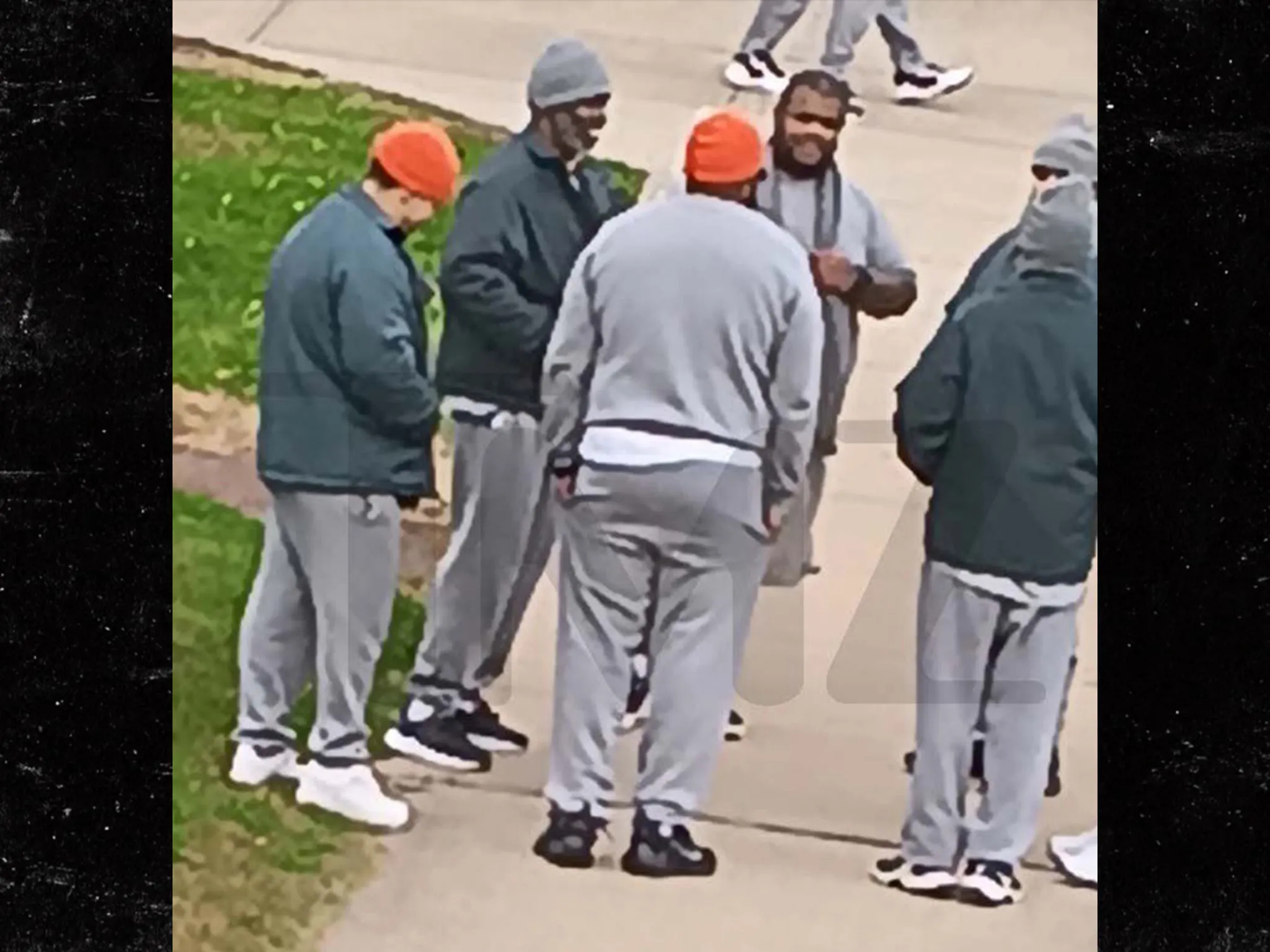 TMZ曝光Diddy吹牛老爹在迪克斯堡监狱服刑期间新照!和狱友有说有笑。除了一张单人照带着橙色帽子,还有几张是他裹着厚厚的深蓝色外套、灰色裤子和灰色毛线帽和其他狱友交流。