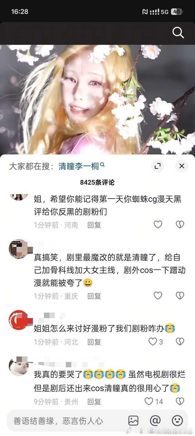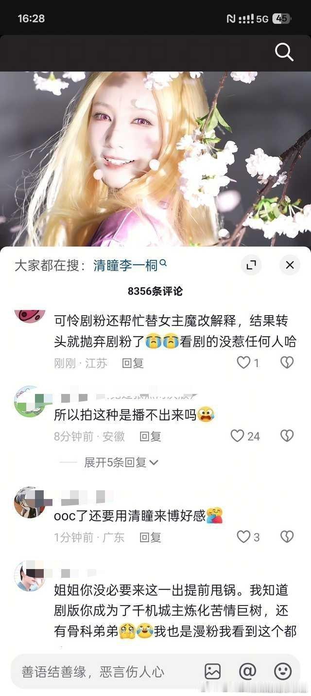李一桐因为cos漫画版的清瞳,被iejj视为背刺,正在麻辣她[流汗] 这不是正常剧宣行为吗[无聊]
