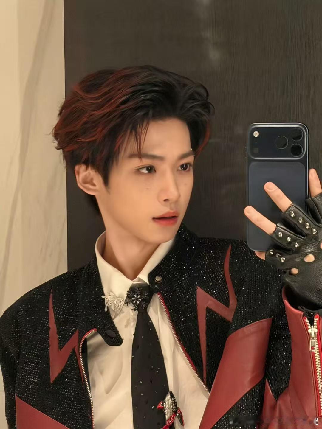 梓渝红发挑染皮衣自拍 自拍多来!爱看!梓渝太好看了!
