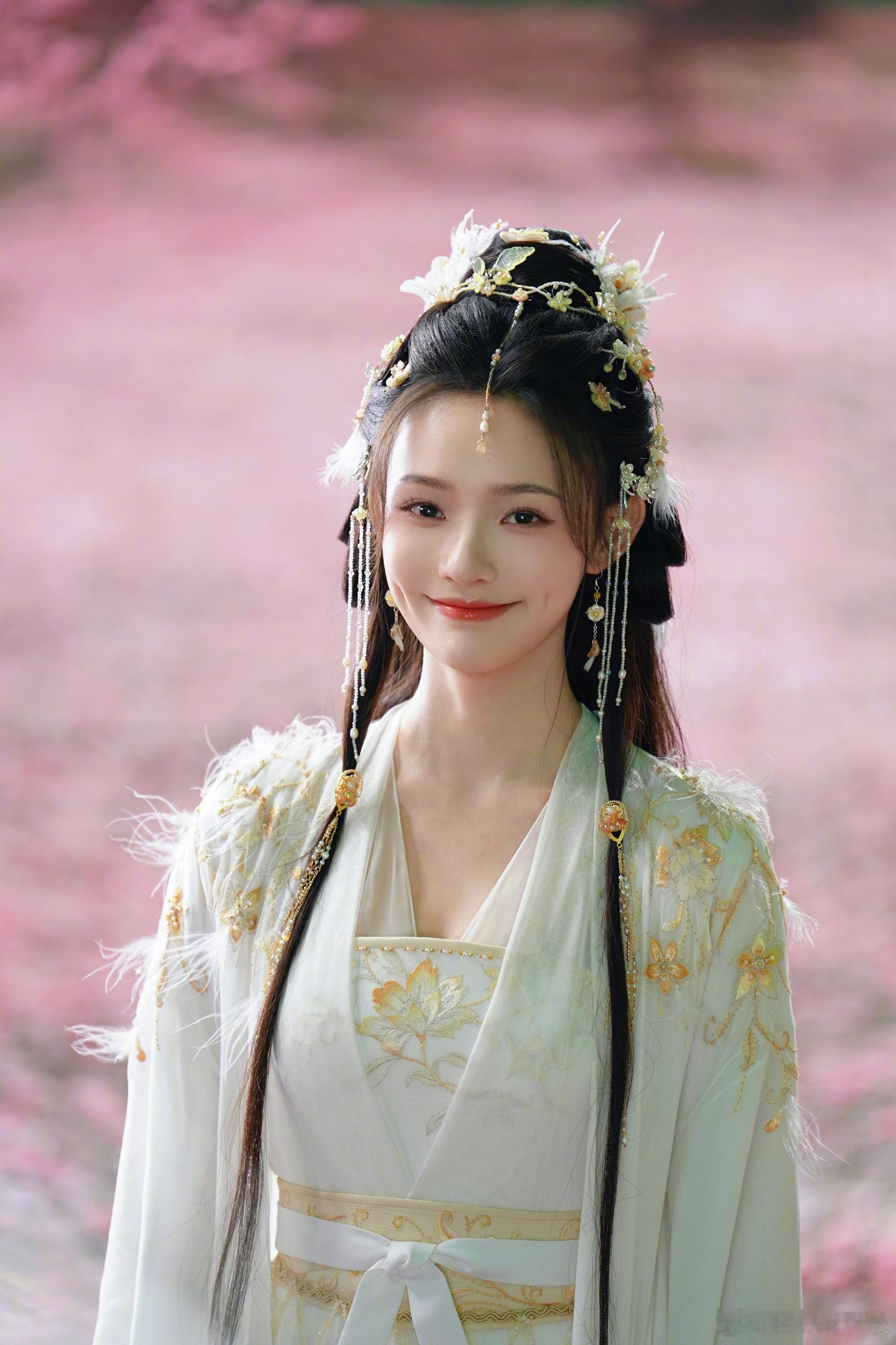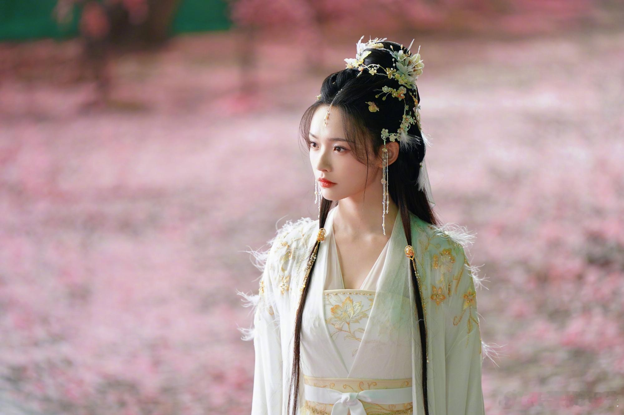 林允 那年杏花微雨 漫天杏花为她作衬,林允《水龙吟》剧照美出新高!绣金白衣襦裙+精巧珠花头饰,流苏随动作轻晃,眉眼含情,宛如从古画走出的花仙,仙侠美学质感绝了~