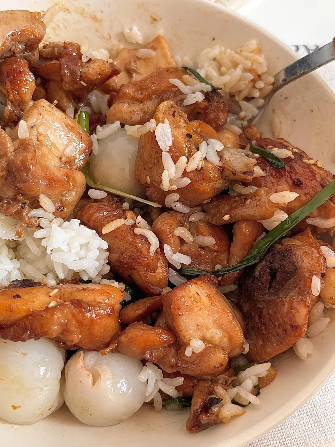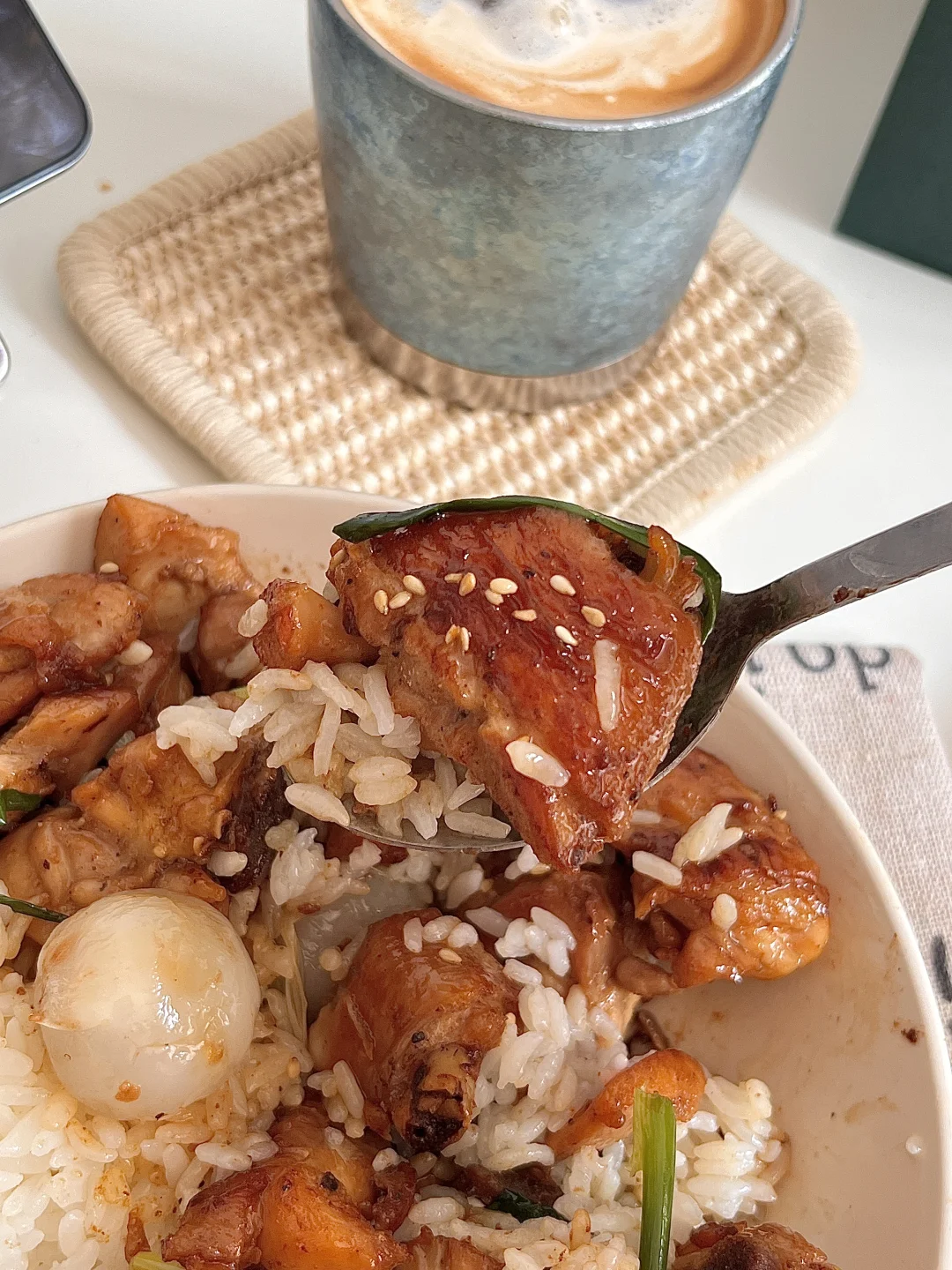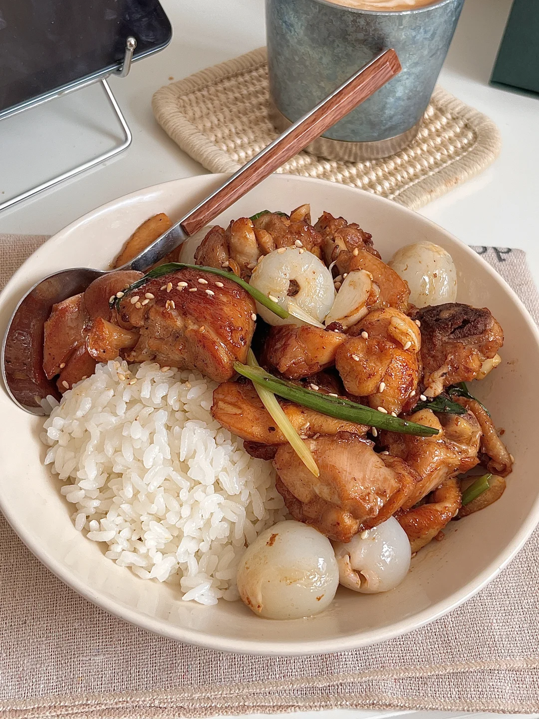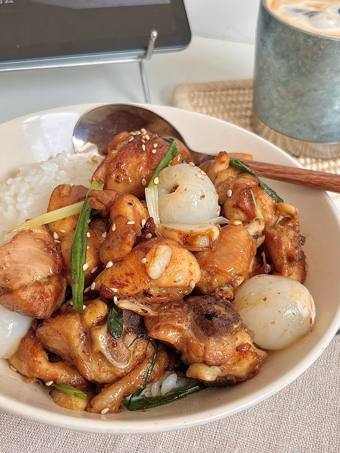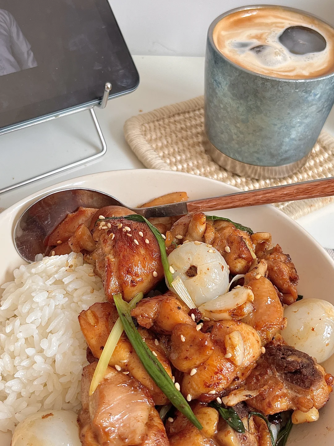 🍴今日份一人食: 荔枝煎鸡腿饭 冰美式☕ . 夏日限定的荔枝煎鸡腿肉,煎的焦香的鸡腿肉再放上新鲜的荔枝爆炒,肉香果甜完美融合,清甜爆汁,真的特别好吃😋爱吃咸甜口的宝快去试试呀✌🏻 . 夏天不能少的冰🧊又给自己入个冰夏杯 磨砂纯钛肌理 保冷效果尊滴很ok 小巧轻便 外出带咖啡☕也方便 夏天想入一个杯子 这只可以闭眼冲~
