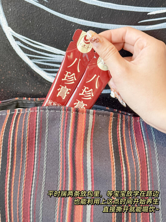 现在我每天早上都会用温水冲一杯,喝完之后全身都暖fufu的。或者平时揣两条放包里,等宝宝放学在路边,也能利用上这点时间开始养生,直接撕开就能啜饮~