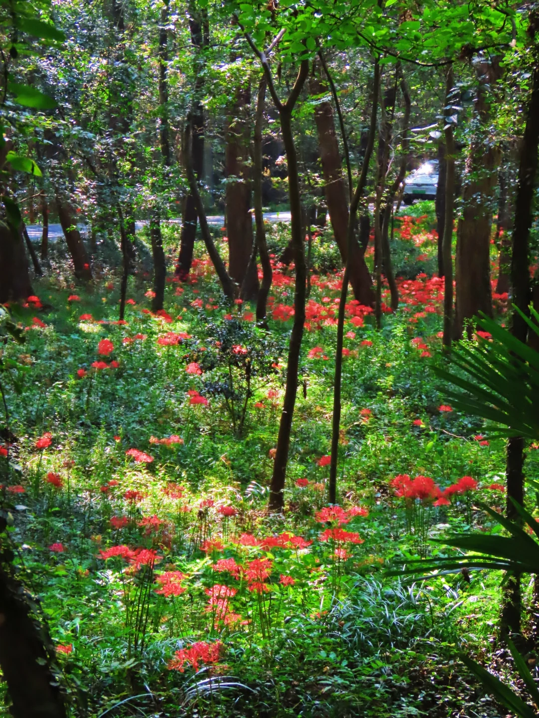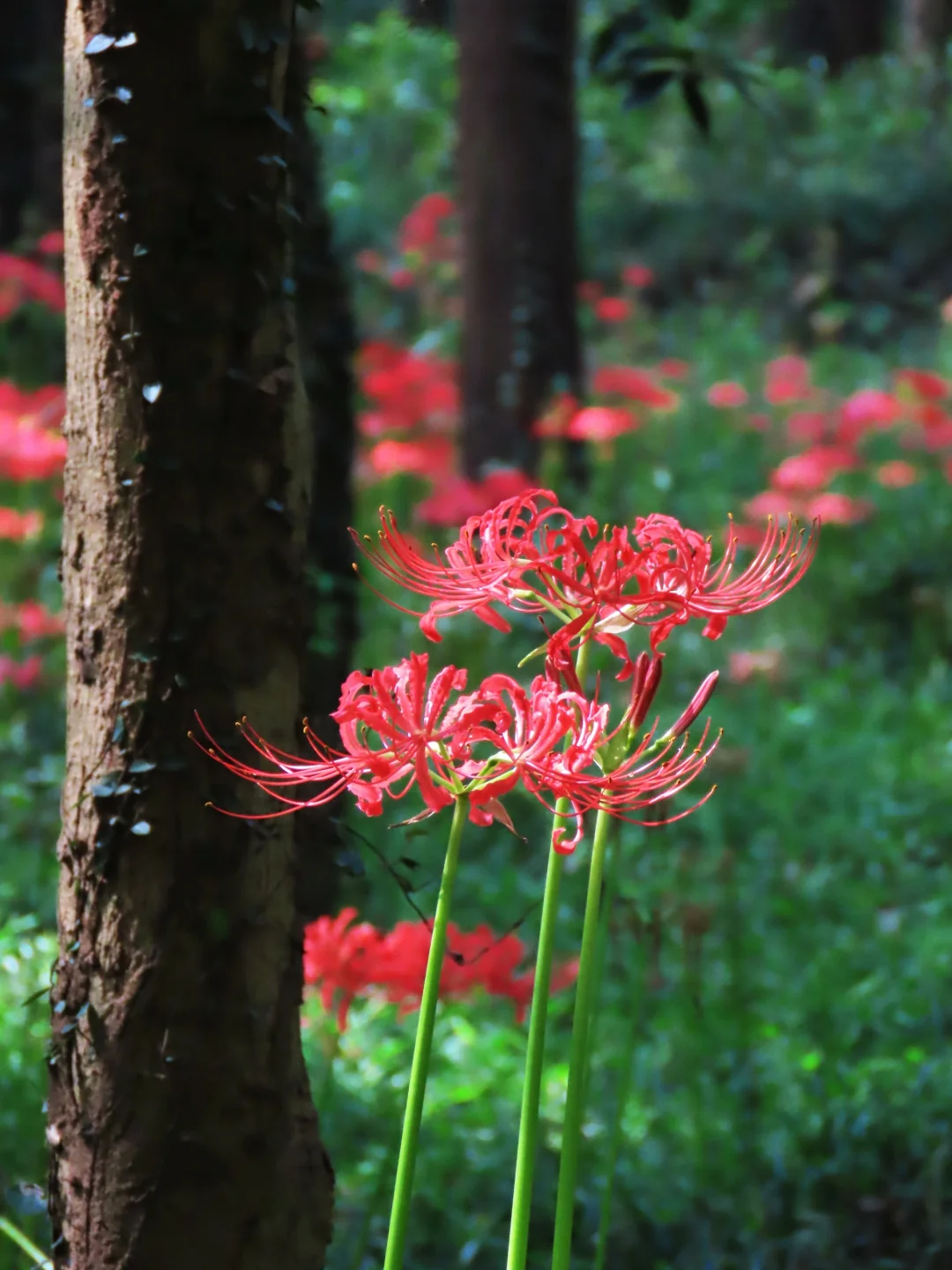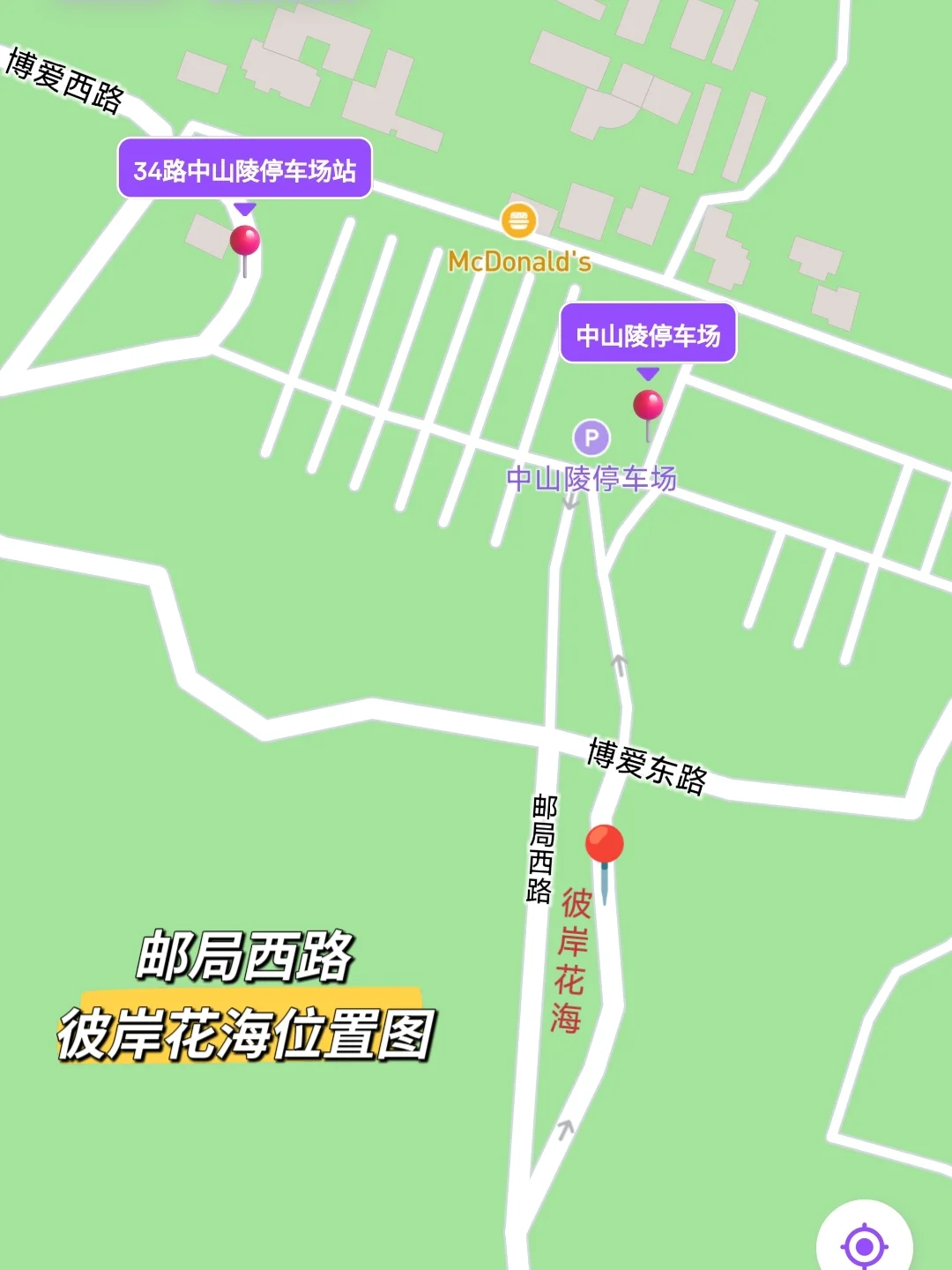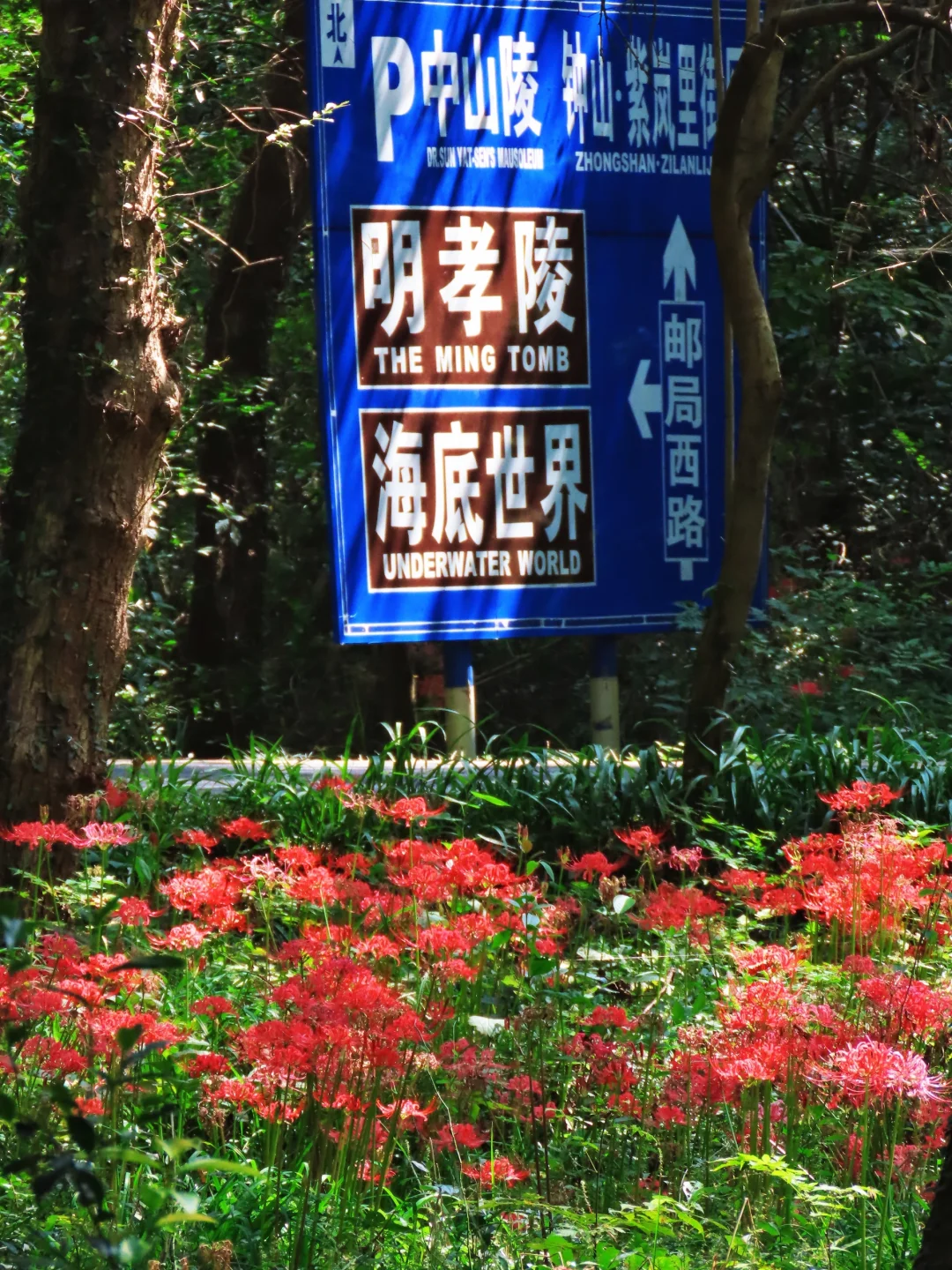 南京中山植物园和琵琶湖的黄色石蒜暂时下线了,红色彼岸花开始接档 今年明孝陵和灵谷寺的彼岸花太少,也许是还没到开的最好的时候 发现一片免费的红色彼岸花花海,人少好拍,花也很多 - 📍花海具体位置: 邮局西路,中山陵停车场出口50米就能看到,定位看最后一张图 - ⚠️花海两边是停车场出入口,拍照注意安全,草丛中蚊虫比较多,注意防护 -