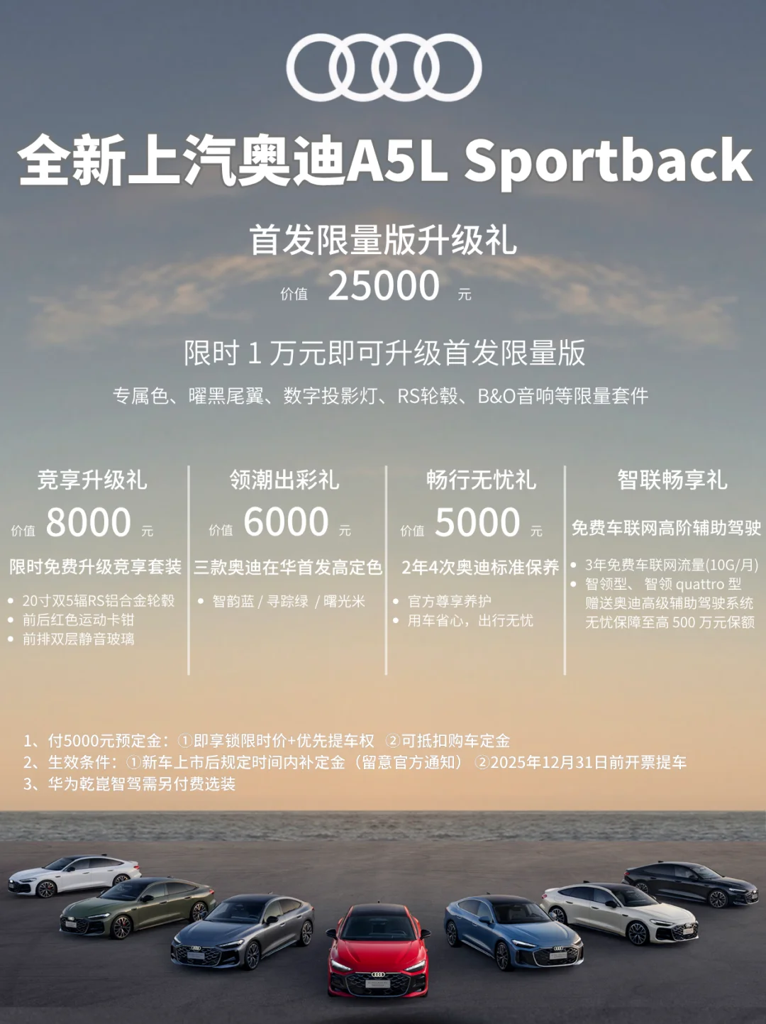 预售信息已公布!全新上汽奥迪A5L首发限时26w起!真粉预定5大权益!