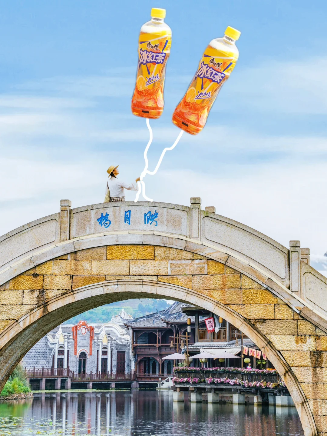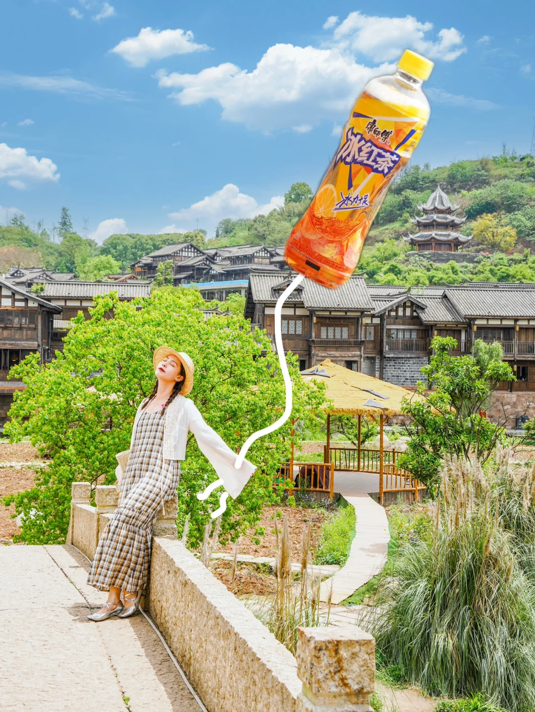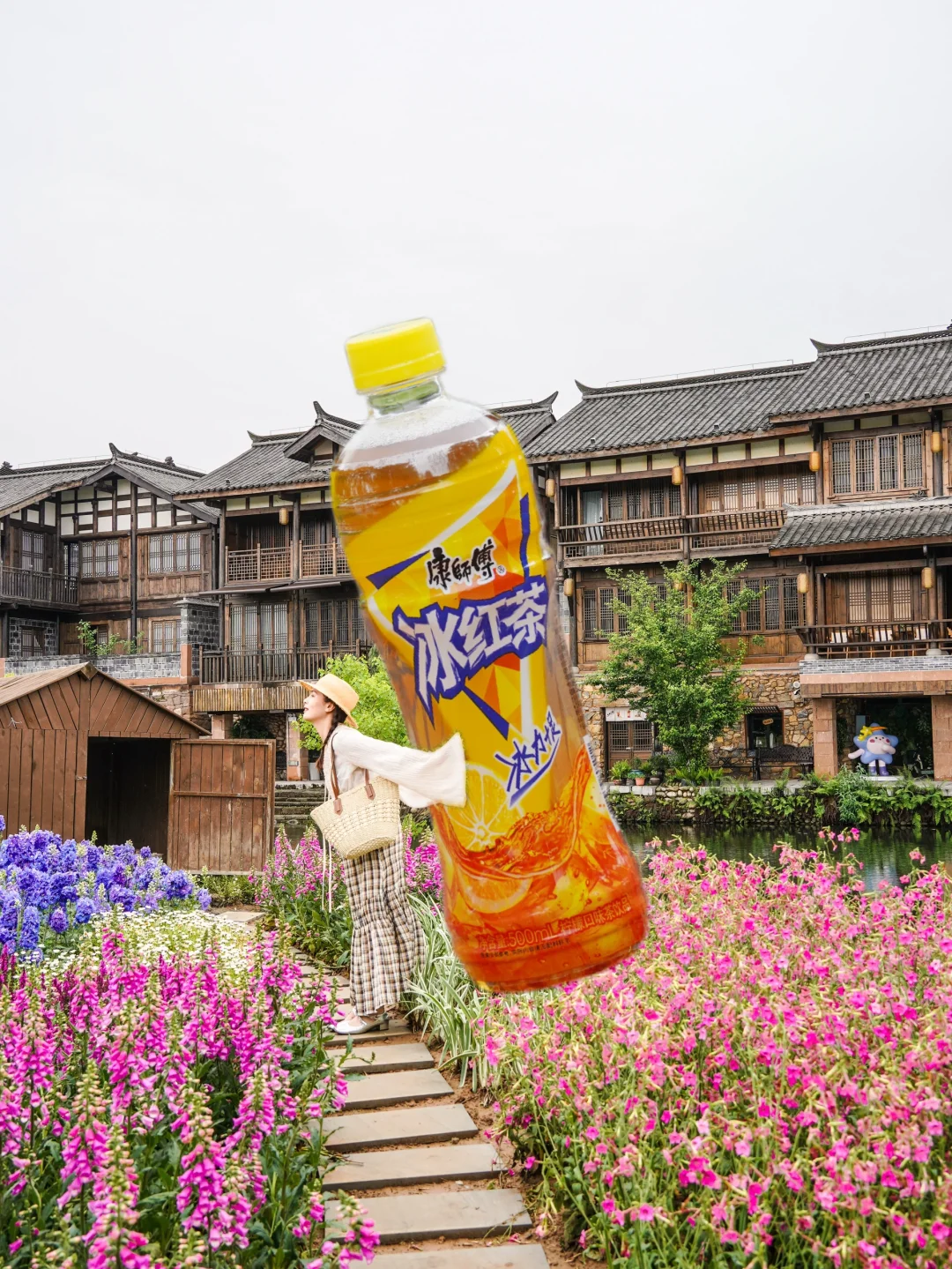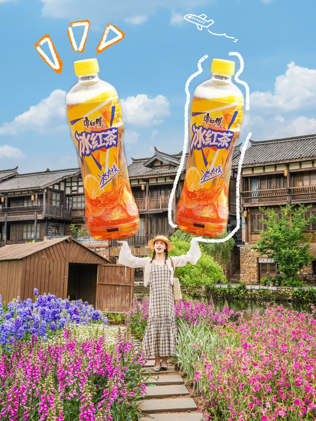 逛古镇逛累了来一口我最爱的康师傅冰红茶[喝奶茶R]
