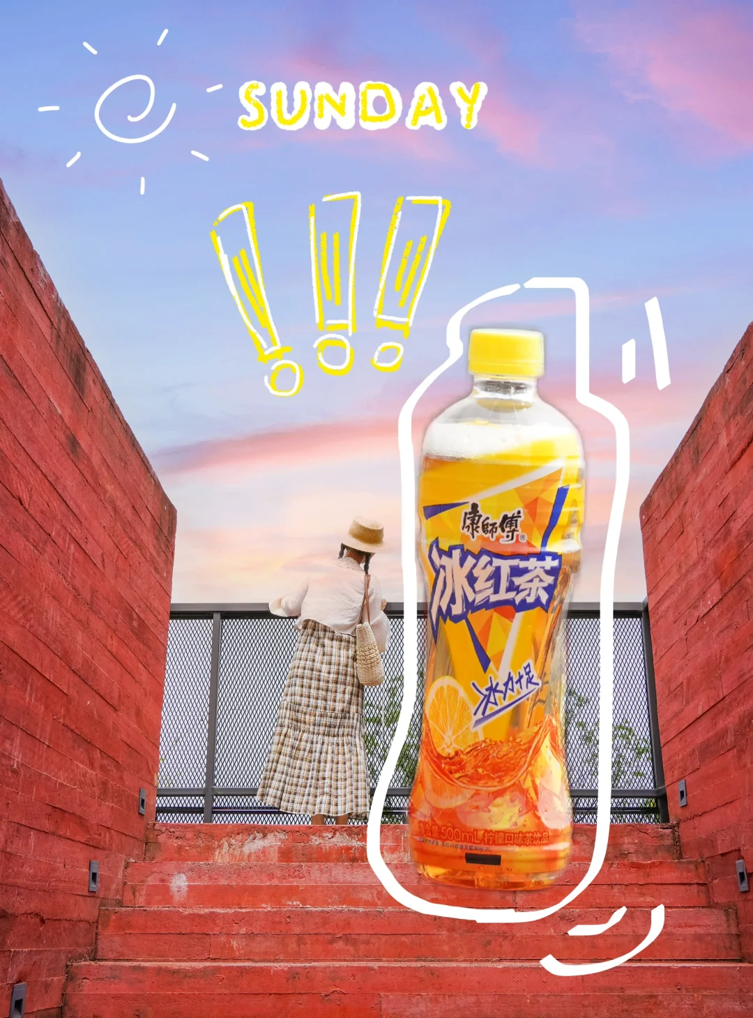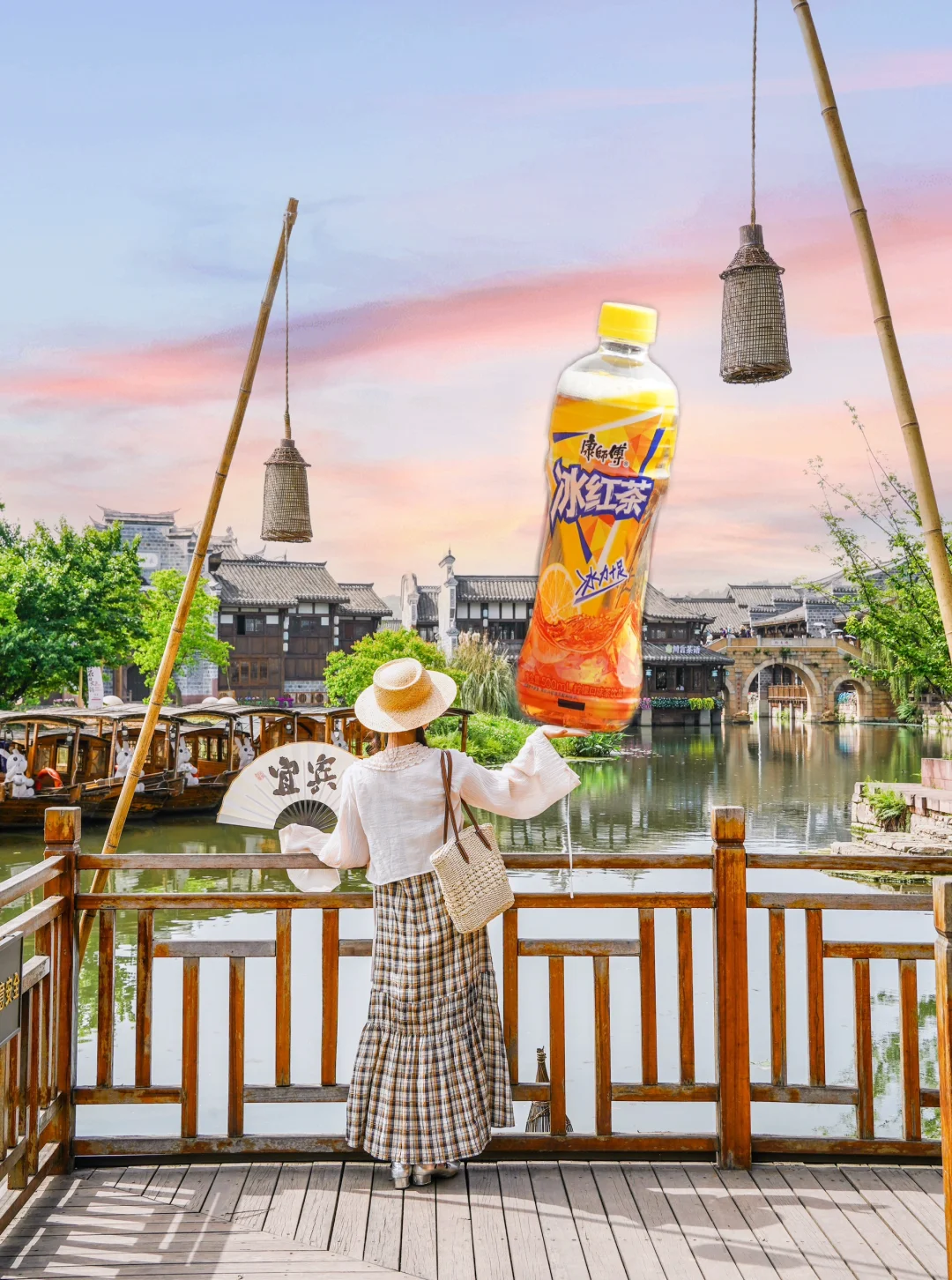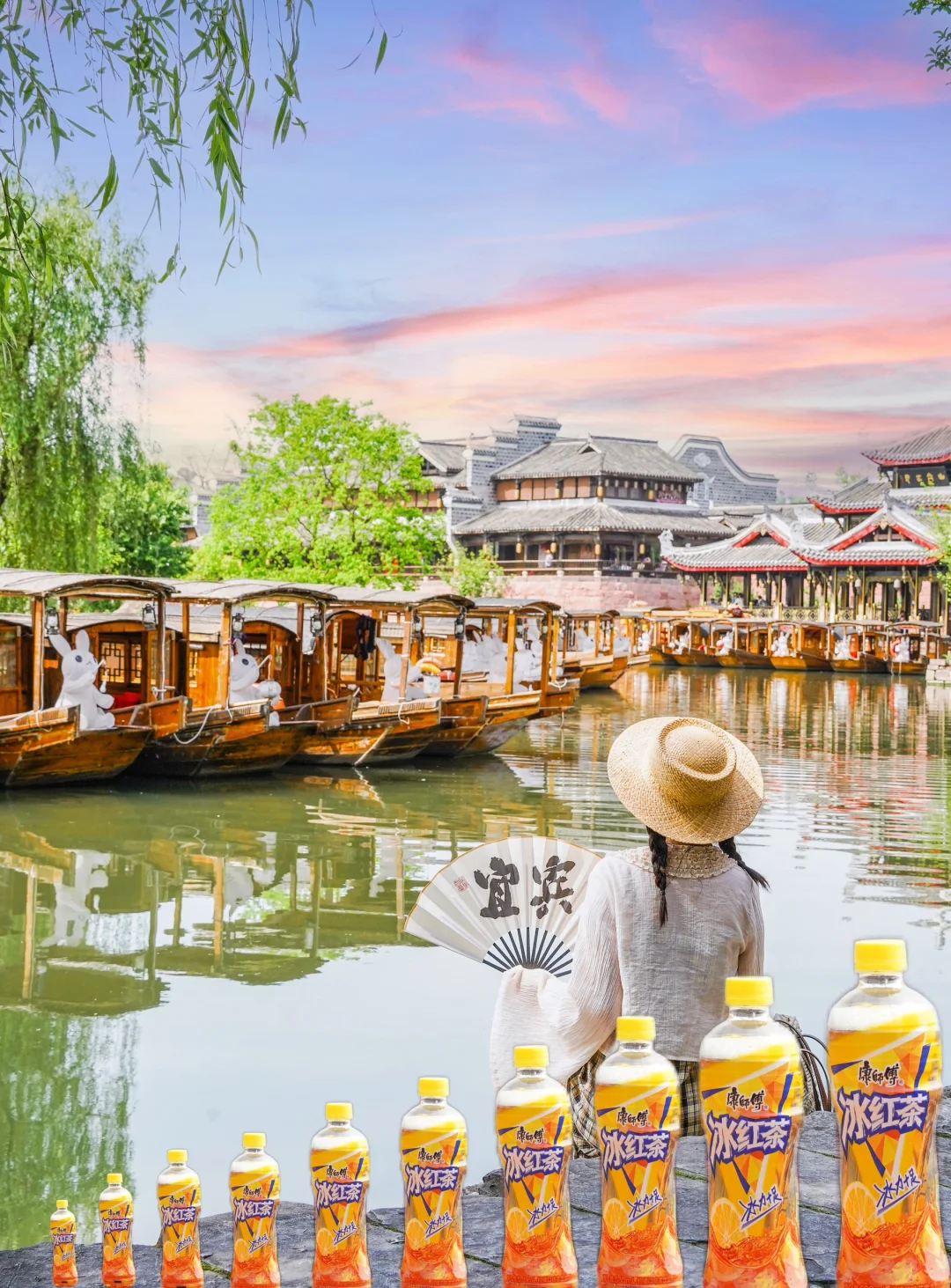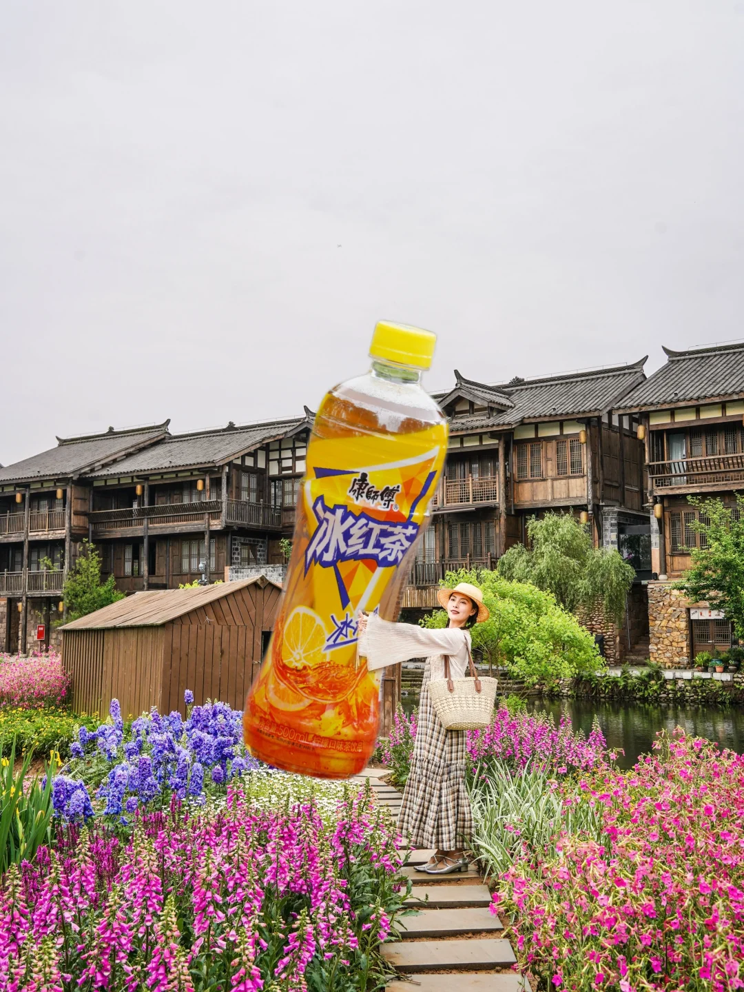 逛古镇逛累了来一口我最爱的康师傅冰红茶[喝奶茶R]