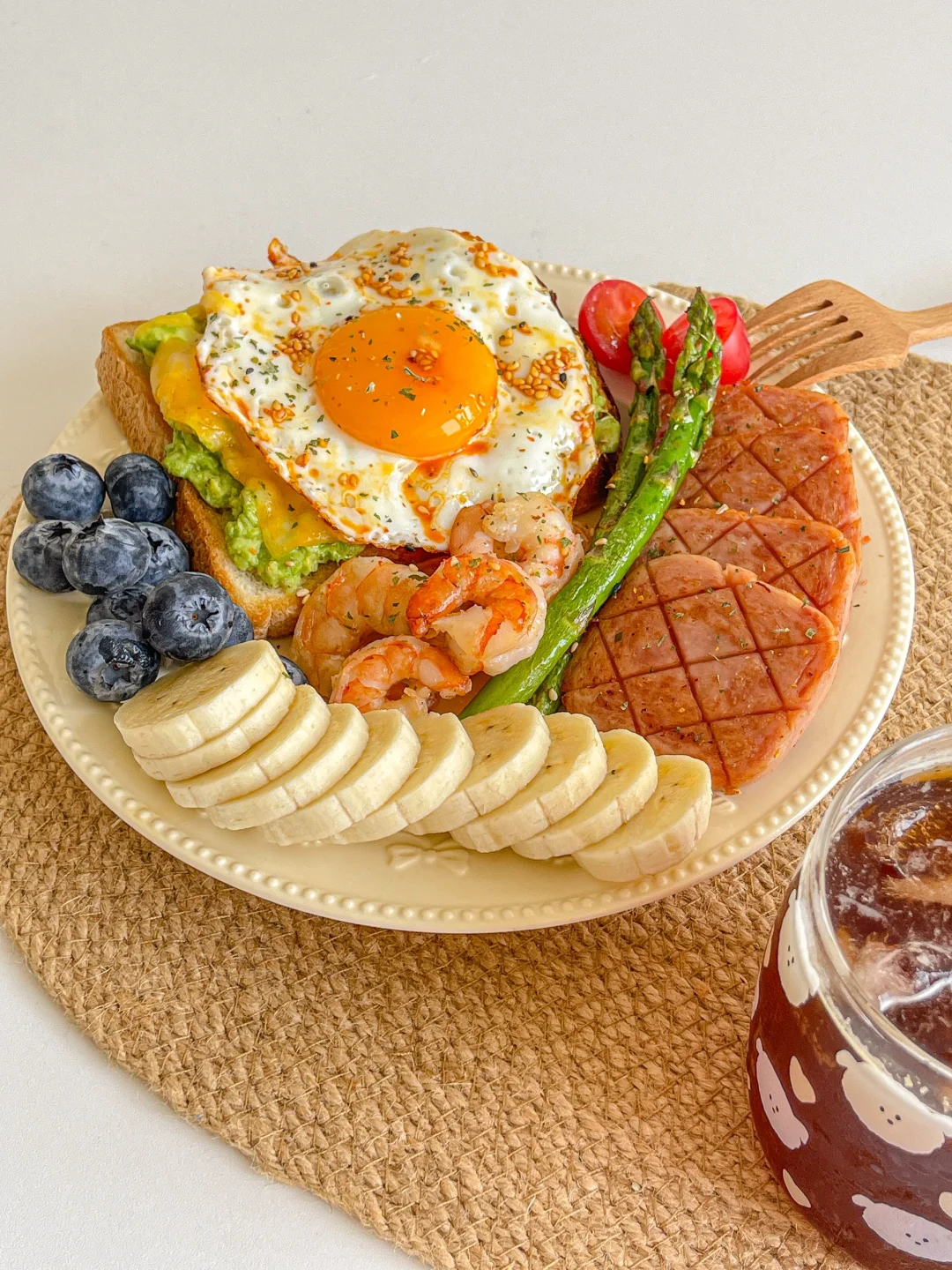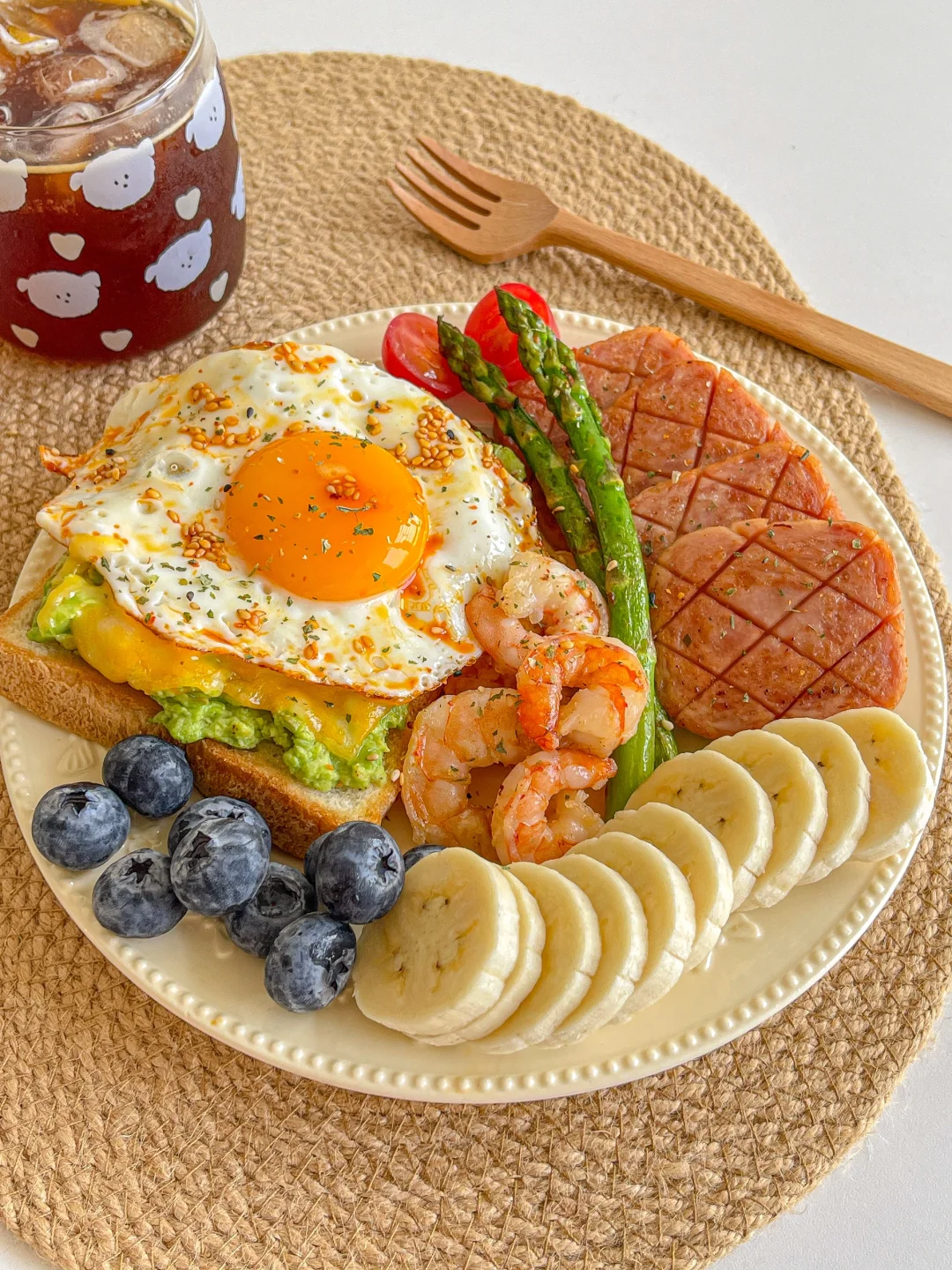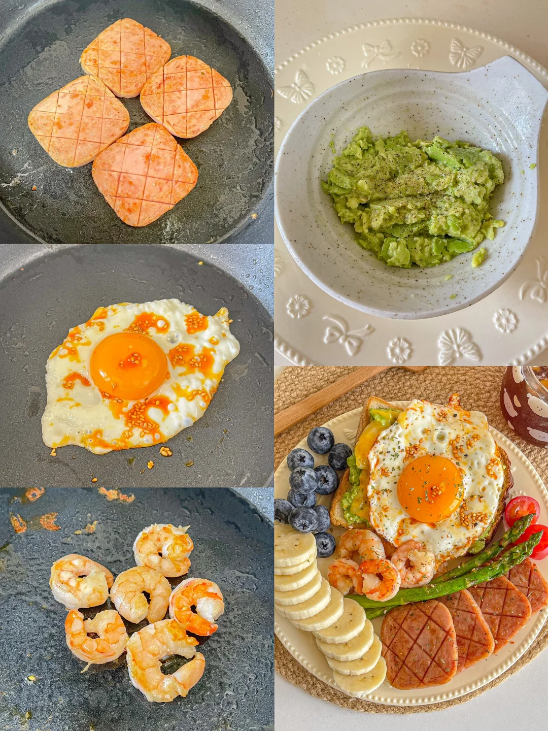 喜欢一个人慢悠悠的做早餐~ 过程hin治愈 而且健康又美味😋 食材:🍳 吐司➕牛油果➕芝士片➕鸡蛋➕午餐肉➕虾仁➕芦笋➕蓝莓➕香蕉➕圣女果 百吃不腻的吐司三明治🥪 不费时间 随便搭配点牛油果就好好吃了[萌萌哒R]