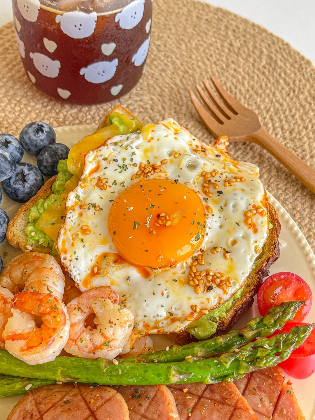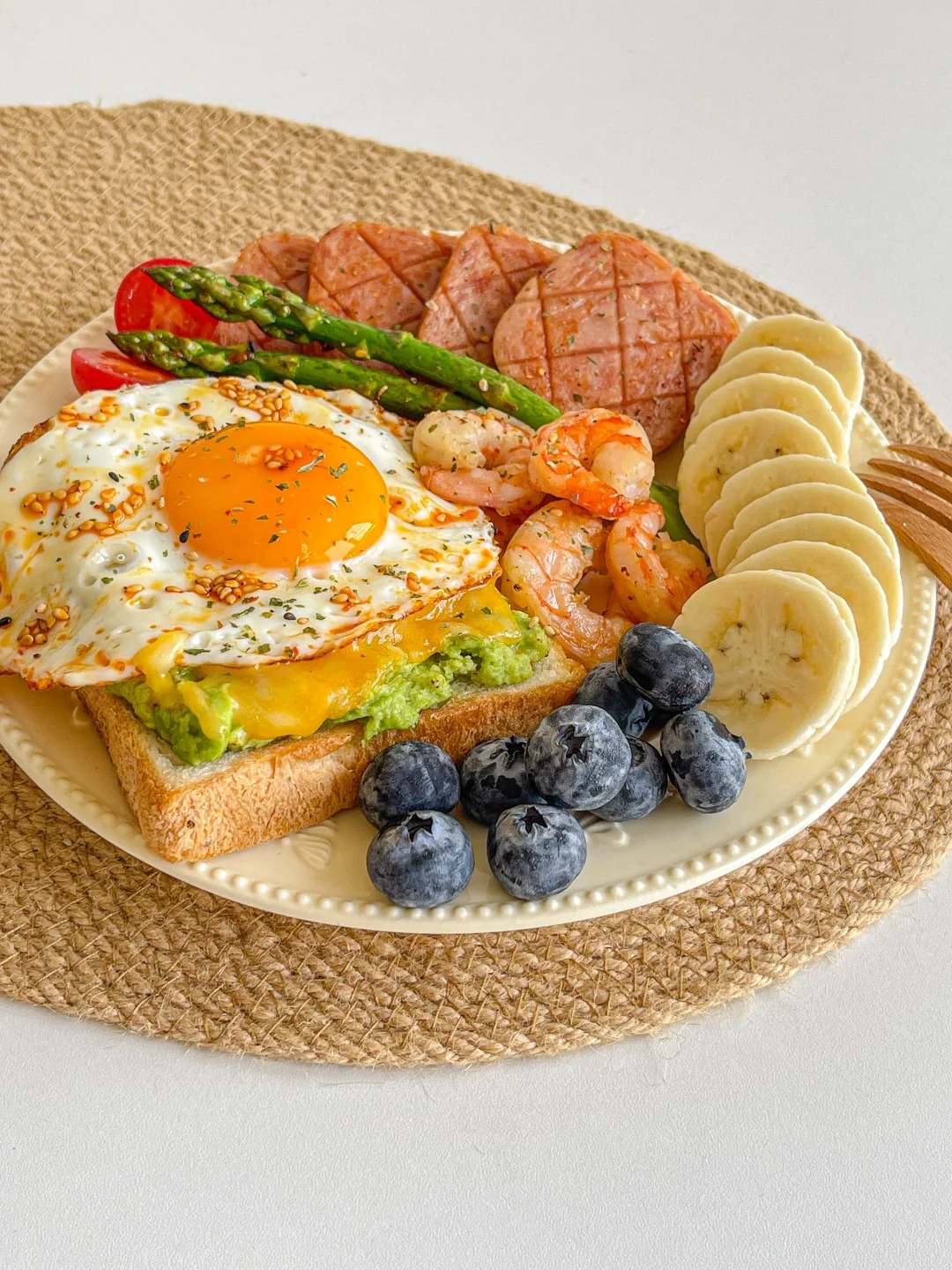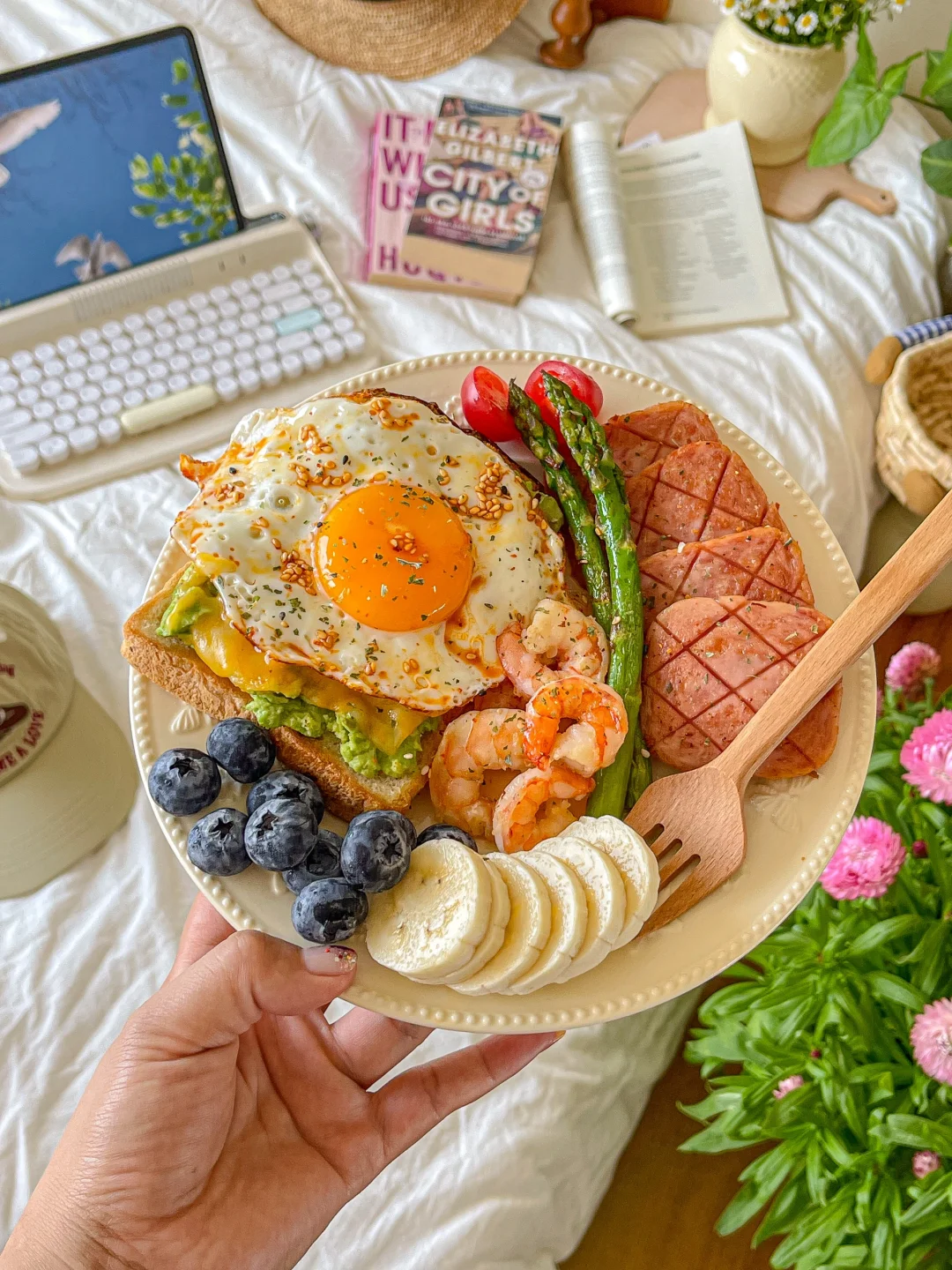 喜欢一个人慢悠悠的做早餐~ 过程hin治愈 而且健康又美味😋 食材:🍳 吐司➕牛油果➕芝士片➕鸡蛋➕午餐肉➕虾仁➕芦笋➕蓝莓➕香蕉➕圣女果 百吃不腻的吐司三明治🥪 不费时间 随便搭配点牛油果就好好吃了[萌萌哒R]