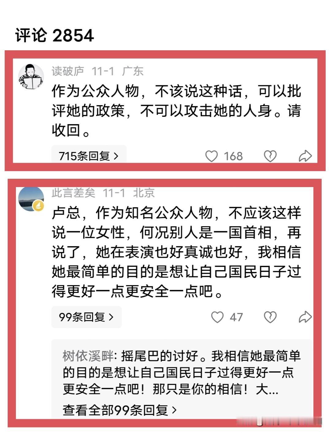 万万没想到, 卢克文的简短的两句话发文, 居然炸出了两个疑似“女拳”“精ri”人物。 我强烈建议让他俩去看看《731》类型的电影,搞清楚现在所享受的美好生活是无数先烈用生命换来的。这种人,打仗的时候一定要把他们送到最前线去。 好在值得安慰的是,评论区还是有一位睿智的台湾同胞,发言可谓是鞭辟入里、一针见血。