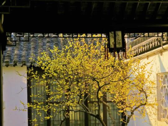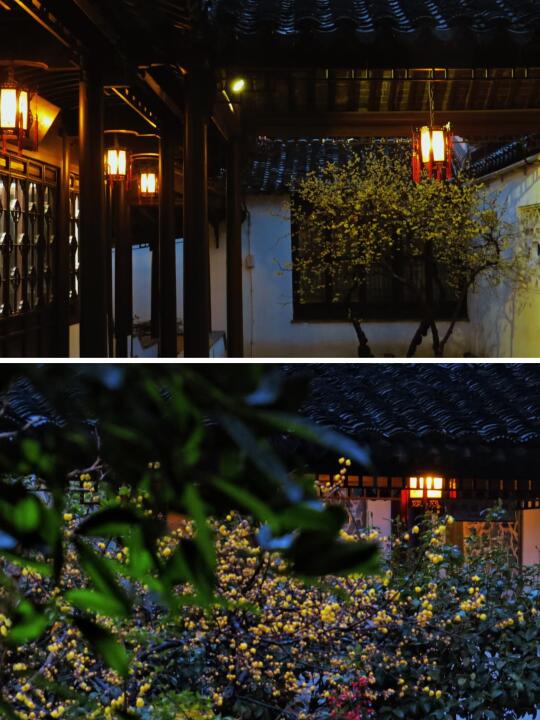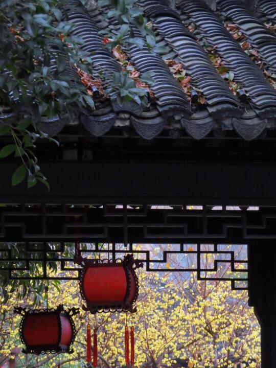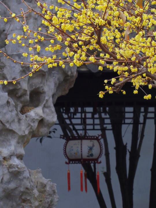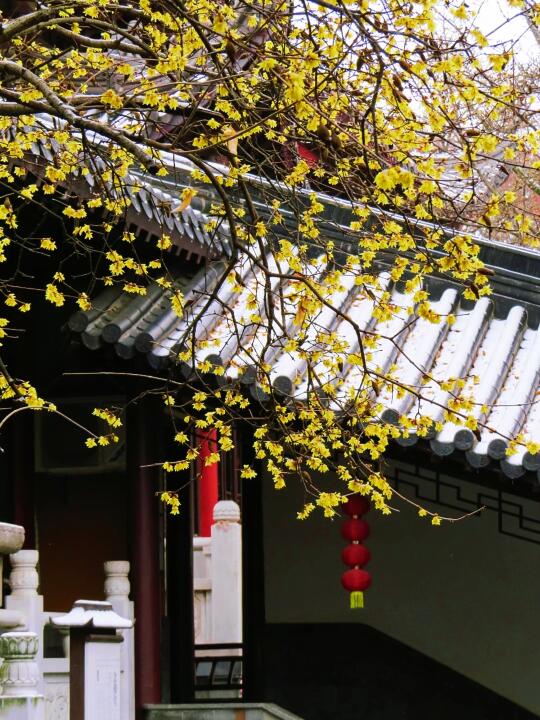说到南京的蜡梅,必须提到瞻园,这里的蜡梅比较分散,不经意的转角就有可能看到,雨中的蜡梅更值得一看,宫灯亮起的刹那,完全就是游园惊梦的感觉