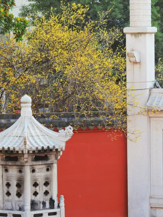 都知道毗卢寺有银杏和桂花,很少人知道这里也有蜡梅,红色寺庙建筑和黄色蜡梅的搭配,和灵谷寺相比,又是另一种感觉