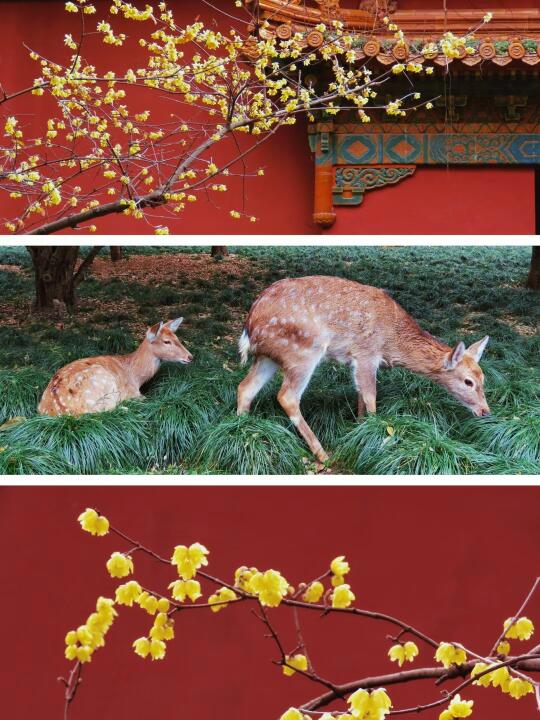 明孝陵是南京市区蜡梅花最多的地方,蜡梅主要集中在陵宫文武方门内外,花盛开的时候,暗香浮动,香气扑鼻,红宫墙、蜡梅黄,如果再碰上大雪,那真的是美到不可方物!