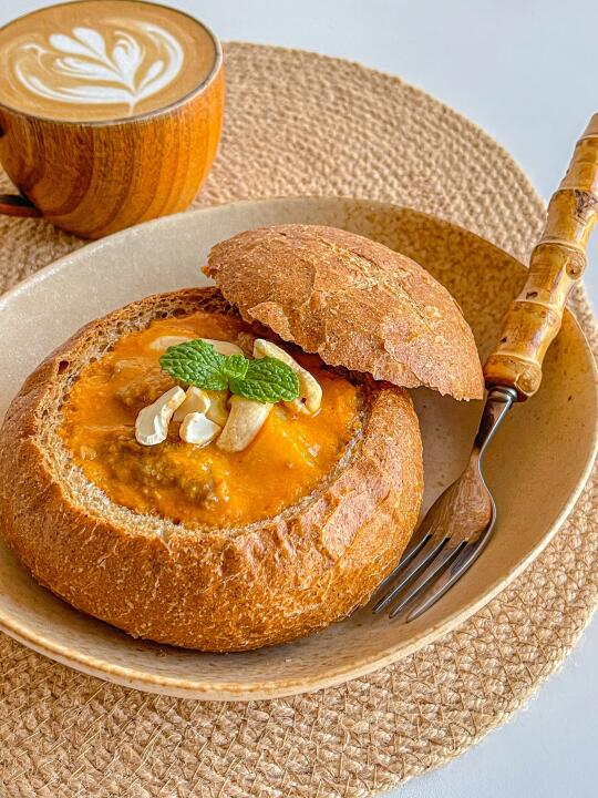 玛萨拉黄油牛肉酸面包碗