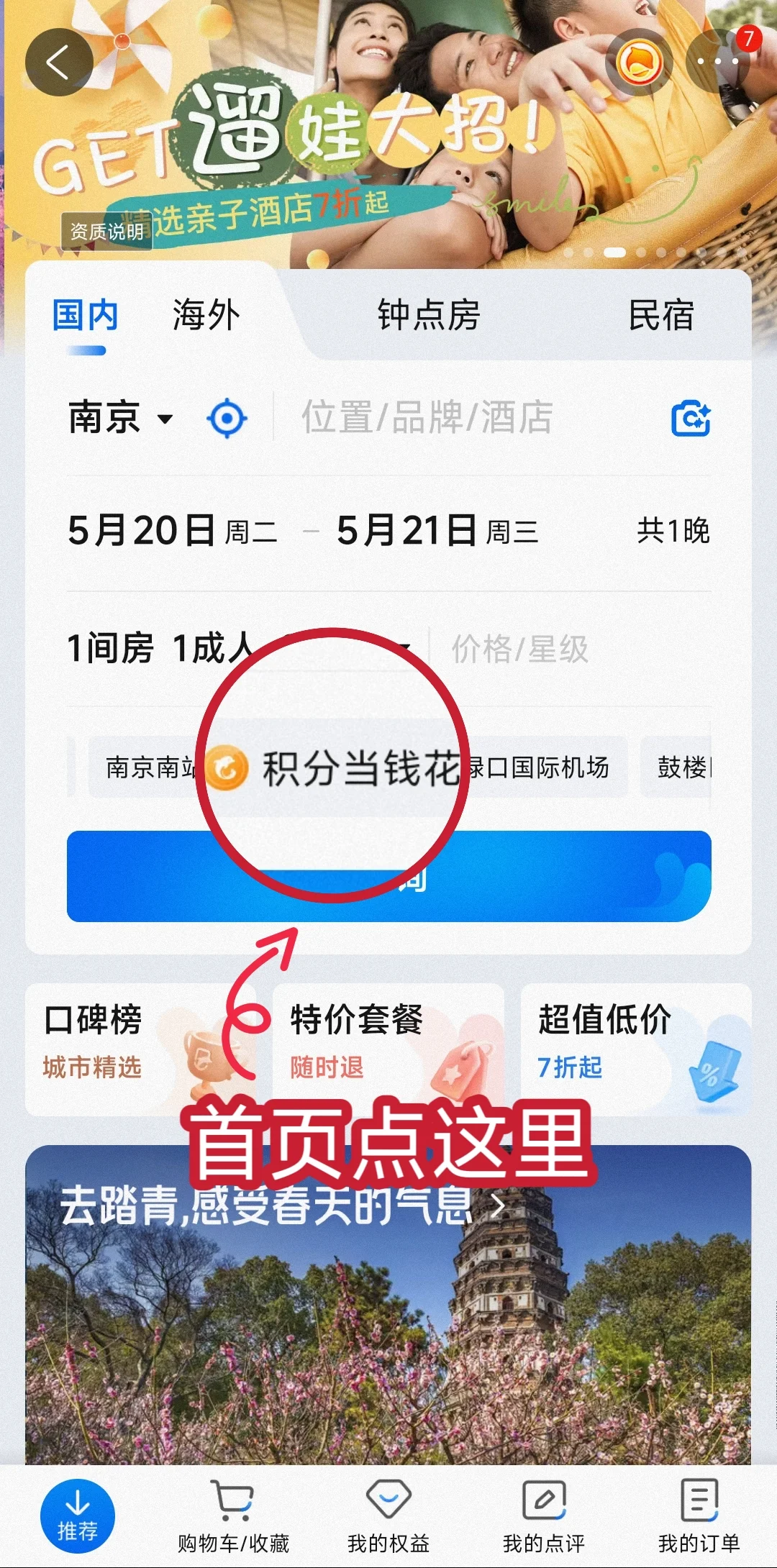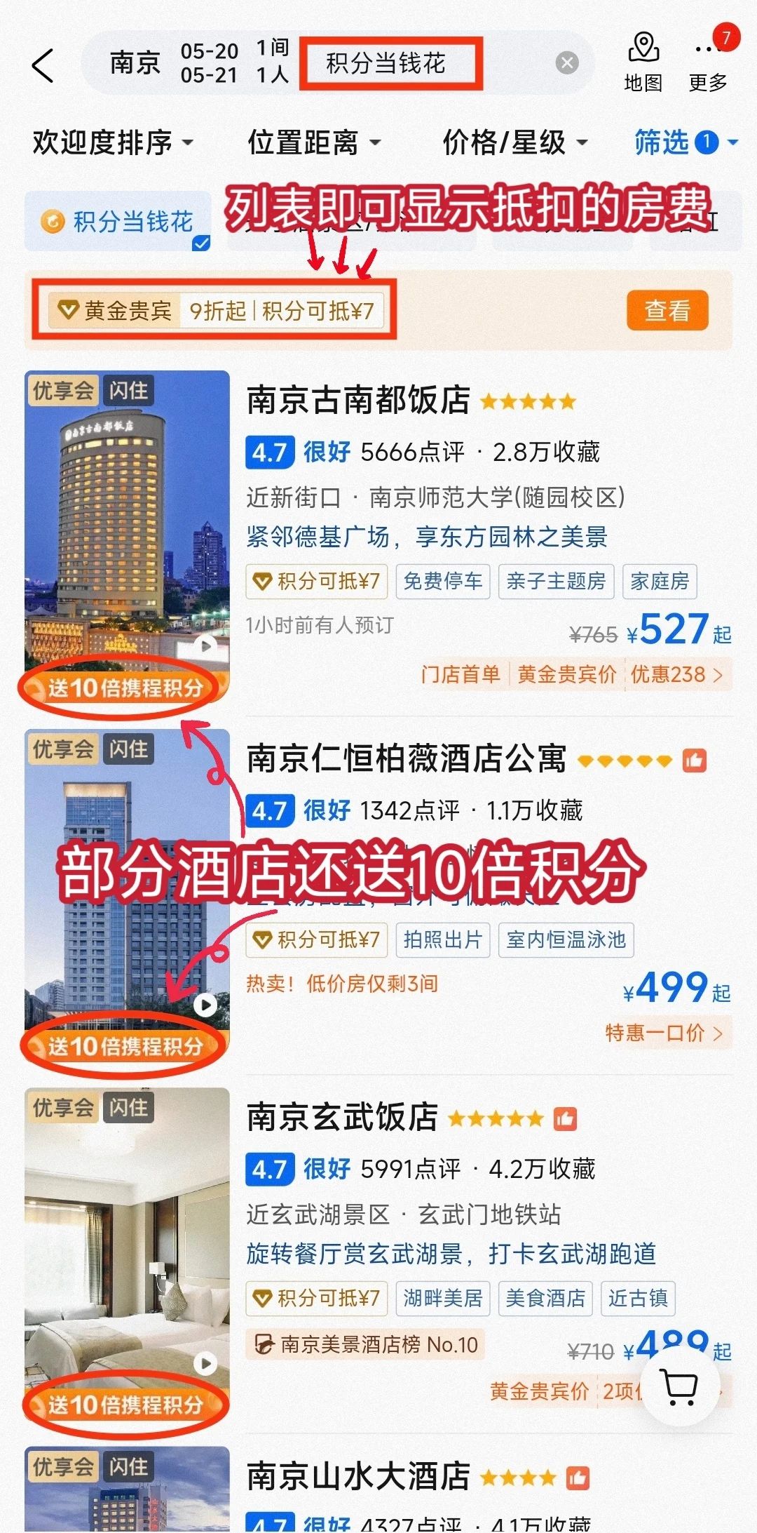 点开携程✅预定酒店,点击🔍积分当钱花的标签“积分当钱花”,列表即可显示抵扣的房费,很多酒店还送10倍积分,下次预订酒店也可以直接抵扣,积分多的宝子抵扣后,会比其他平台便宜很多,可太划算了!