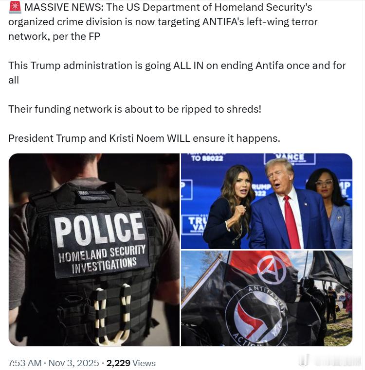 据FP报道,美国国土安全部的有组织犯罪部门现已将目标锁定在安提法的左派恐怖网络上。