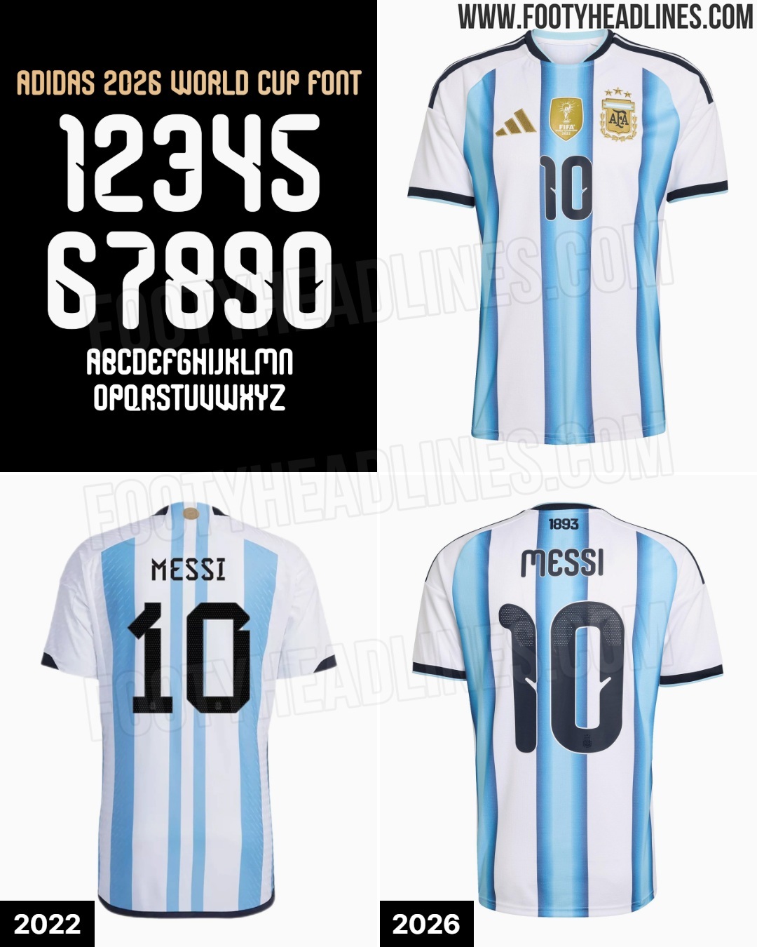 🇦🇷FH披露了阿根廷队2026世界杯主场球衣字体🌎👕