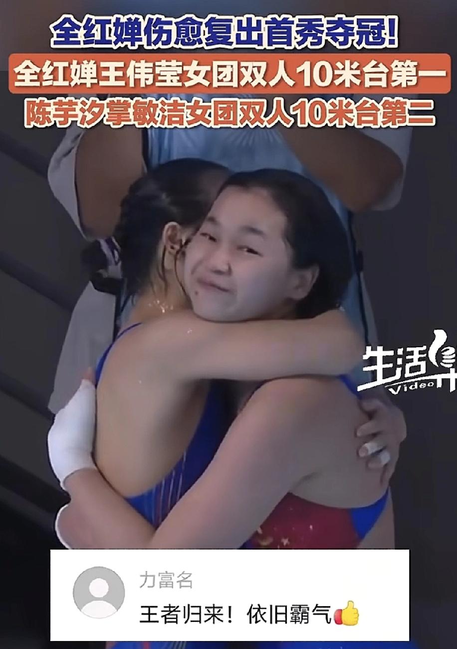 王者归来,依然霸气! 陈芋汐没有想到,陈若琳也没有想到,就连全红婵自己也没有料到,时隔183天重返赛场,即使换了一个搭档,复出首秀依然夺下冠军。   这半年,全红婵的名字没有走远,可关注的焦点却变得有点微妙,自从她因为伤病停赛,外界开始围绕她的体型变化议论纷纷,不少人说她胖了,动作肯定做不回原来的水平,甚至有人公开唱衰她的跳台表现。   这种质疑和压力铺天盖地压了过来,不少观众开始质疑她是不是不如从前了。   为了重新站好这第一步,全红婵和团队直接放弃了个人项目,把全部注意力放在了团体和双人赛,谁都看得出来,她这不是逃避,而是想踏踏实实把自己练起来,再一次证明自己。   跟新搭档王伟莹的组合也是个挑战,但两个人站在十米台上,第一跳就打出了亮眼分数,评分榜直接占了龙头位置。   队里动作配合得紧密,每个动作都不像外面传的那样“松散”,那股精气神一下子就摆在那里,不到最后一跳,没人敢断定金牌一定归谁,可她们最后的稳定发挥直接把冠军揽进了怀里。   比赛结束后,全红婵和王伟莹的名字成了焦点,对于广东队来说,这不仅仅是个冠军,更是本届全运会上跳水项目的开门红。   这背后是全红婵不声不响坚持了大半年的结果,受伤退赛的那天起,她就咬着牙一点点恢复,痛苦和煎熬都没放弃,发育带来的身体变化也没让她退缩。   全红婵用实际表现堵住了所有人的嘴,也给了那些爱挑刺的人沉默的理由,其实,年轻女运动员在长身体的时候,遇到这样那样的困难太正常了,全红婵这次证明了自己,更证明了中国运动员在大风大浪面前不认输的劲头。