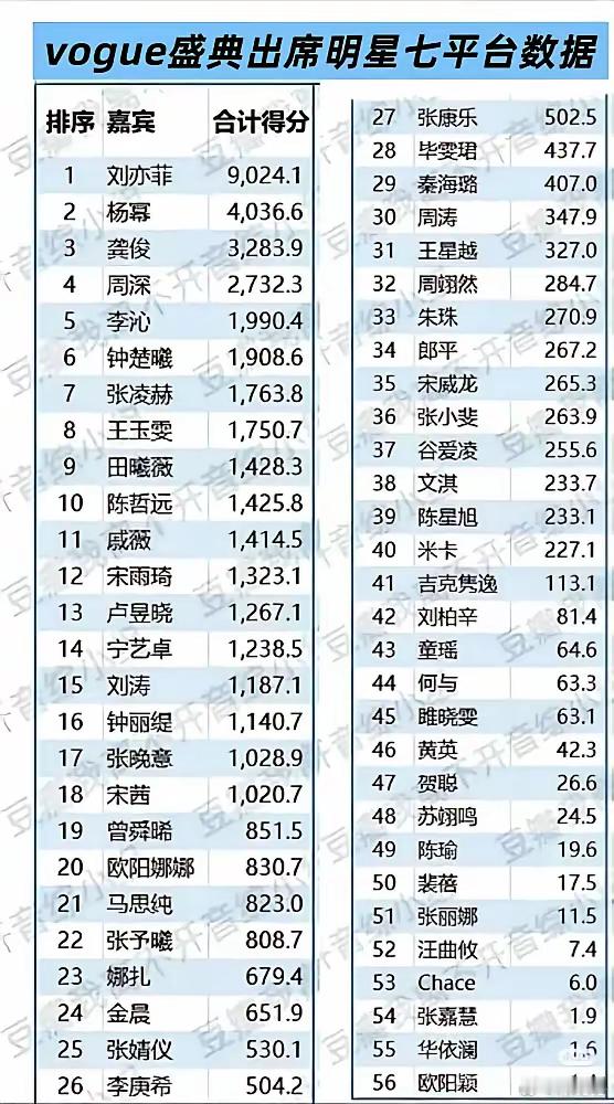 刘亦菲断层第一,没想到李沁也是靠前的,钟楚曦也在前面了,居然比后面的流量都靠