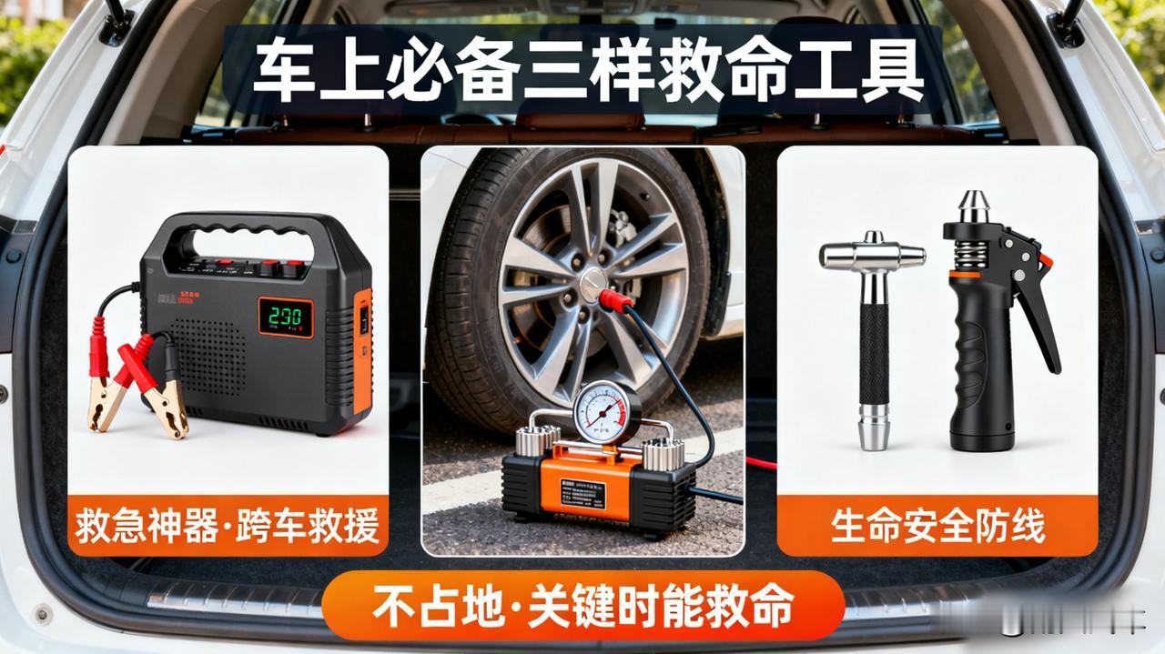 车上最该常备的三样东西,你备齐了吗? 1、搭电宝(救急也救别人);2、充气泵(胎压不足随时补);3、破窗器(希望永远用不上)。 这三样不占地,关键时能顶大用。 汽车防困好物 车内的降温装备 汽车自救工具 车载自救工具 车载应急用品 汽车应急破窗器 车载应急物品