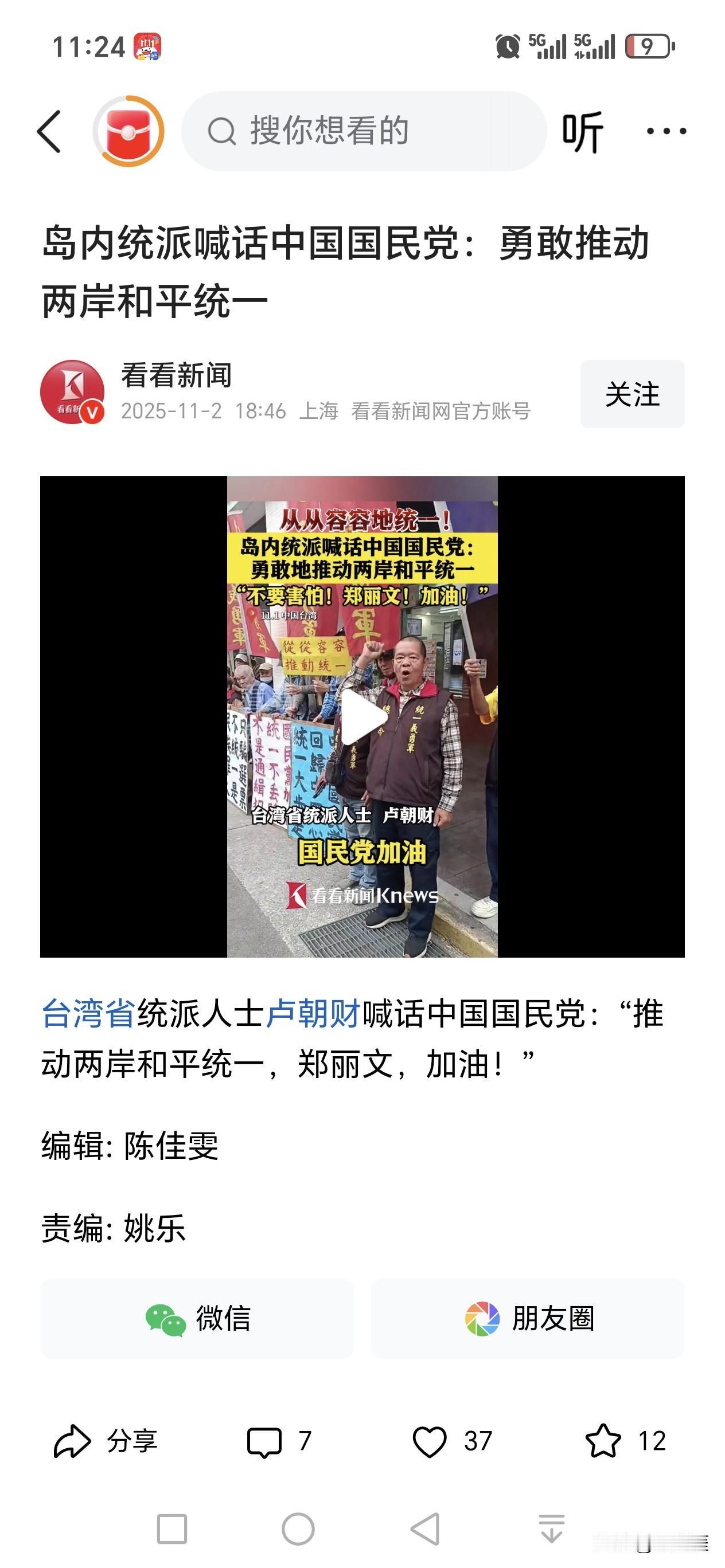 郑丽文,你听到了吗?岛内统派人士正在向你喊话,他们希望你推动两岸和平统一。 统派人士比你勇敢多了,敢直接喊两岸统一,你却畏手畏脚,始终不敢说出支持两岸统一一词,你到底在怕什么?还是说你另有所图? 别再犹豫不决了,下定决心吧,你任期内如果能推动祖国统一,你就是中华民族的英雄,14亿中国人以及子孙后代都会记住你的贡献,这么大荣耀,你还有什么可以疑虑的?