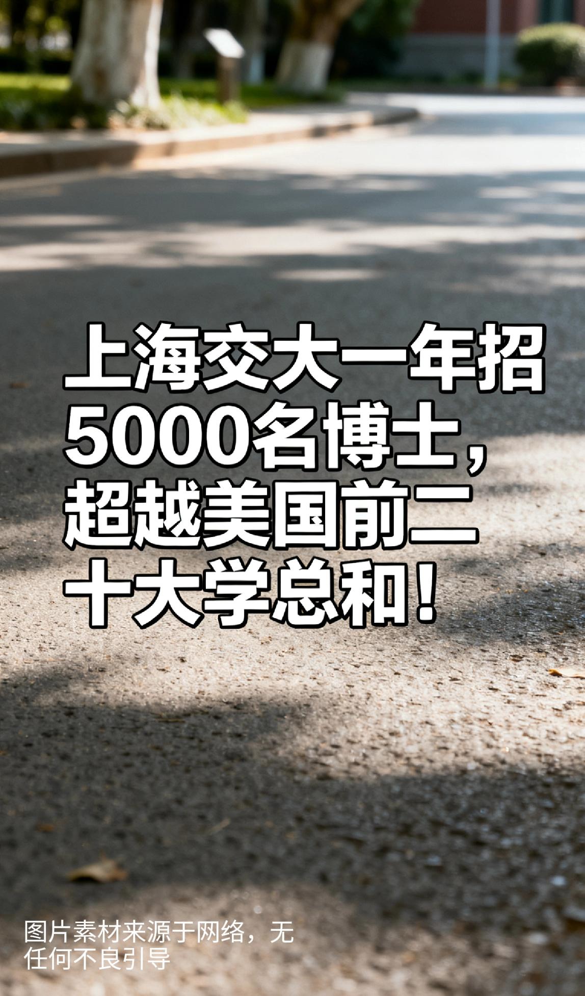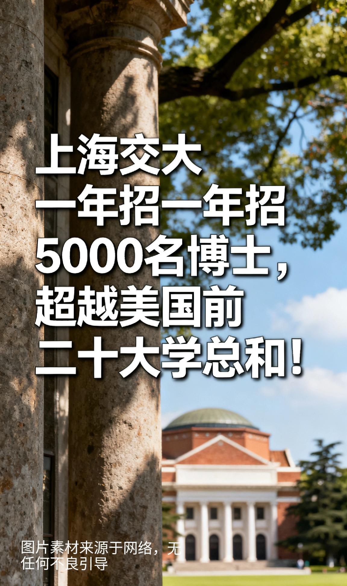 上海交大一年招5000博士!是战略雄心还是学历“通胀”? 上海交大2026年要招5000名博士,这数比哈佛的三倍还多,快赶上美国前20名校博士招生总和的三分之一。 这规模,放眼全球都显眼 搁以前谁能想到,一所高校的博士招生能这么“豪横”。2020年上海交大才招2500名博士,短短六年直接翻番,这下正式挤进“博士5000俱乐部”。 这还不是独一份的热闹。浙大2024年招了约4800人,清华2025年计划4500人,北大也稳定在4000人左右。对比下国外,哈佛2024-2025学年才招1366名博士,美国前20高校一年博士毕业生总和也就1.4万人,中国顶尖高校的扩招力度确实够劲儿。 扩招背后,是国家的“人才算盘” 这事儿真不是高校自己“拍脑袋”决定的。中办、国办早有文件,要打造世界一流的博士教育体系,规模质量得齐头并进。 现在中国博士总量超61万人,2023年应届毕业就有7.52万人,美国每培养2名理工科博士,中国就出3名。为啥要这么拼?产业升级需要“高智商人才”撑场面,从劳动密集型转向科技密集型,没博士级别的人才可不行。加上中美战略博弈,提前储备高层次人才成了刚需,专业博士扩招就是为了培养能解决实际问题的技术高手。 欢喜背后,俩难题绕不开 规模上去了,质疑声也跟着来。首当其冲是质量问题,博导就那么多,以前招得少还能精雕细琢,现在一位博导一年带三四甚至五六名学生,精力根本跟不上。有人直言这是“为了缓解就业压力”,虽说偏激,但也不是空穴来风。 更头疼的是就业。一年毕业15万博士,高校和科研机构的岗位才4万左右,剩下的博士去哪儿?中小学讲台、基层公务员岗位都出现了博士的身影。倒不是说这些岗位不好,只是和大家对“博士就业”的传统认知差得有点远。 破局关键,得在培养模式上“下猛药” 面对挑战,高校们也没闲着。西湖大学搞的“申请—考核”制就很有新意,不管是不是应届生、有没有推免资格,都能申请,还专设学科交叉培养项目。 清华大学也点出了问题关键,有的导师重招生轻培养,质量保障体系不健全。对此国家早有对策,强化分流退出、建高水平导师队伍、完善评价体系都在推进。更有人提议打破博导职称限制,让企业专家也能加入指导,甚至搞博士预科让学生先体验再决定,这些都是给博士培养“提质”的好点子。 全球都一样,博士毕业生越来越多,学术界装不下,工业界成了新去向。上海交大的扩招是中国高等教育的一个缩影,既要满足国家战略需求,又得守住质量底线。 说到底,博士扩招不是“数字游戏”,把规模优势变成创新优势,才是真本事。